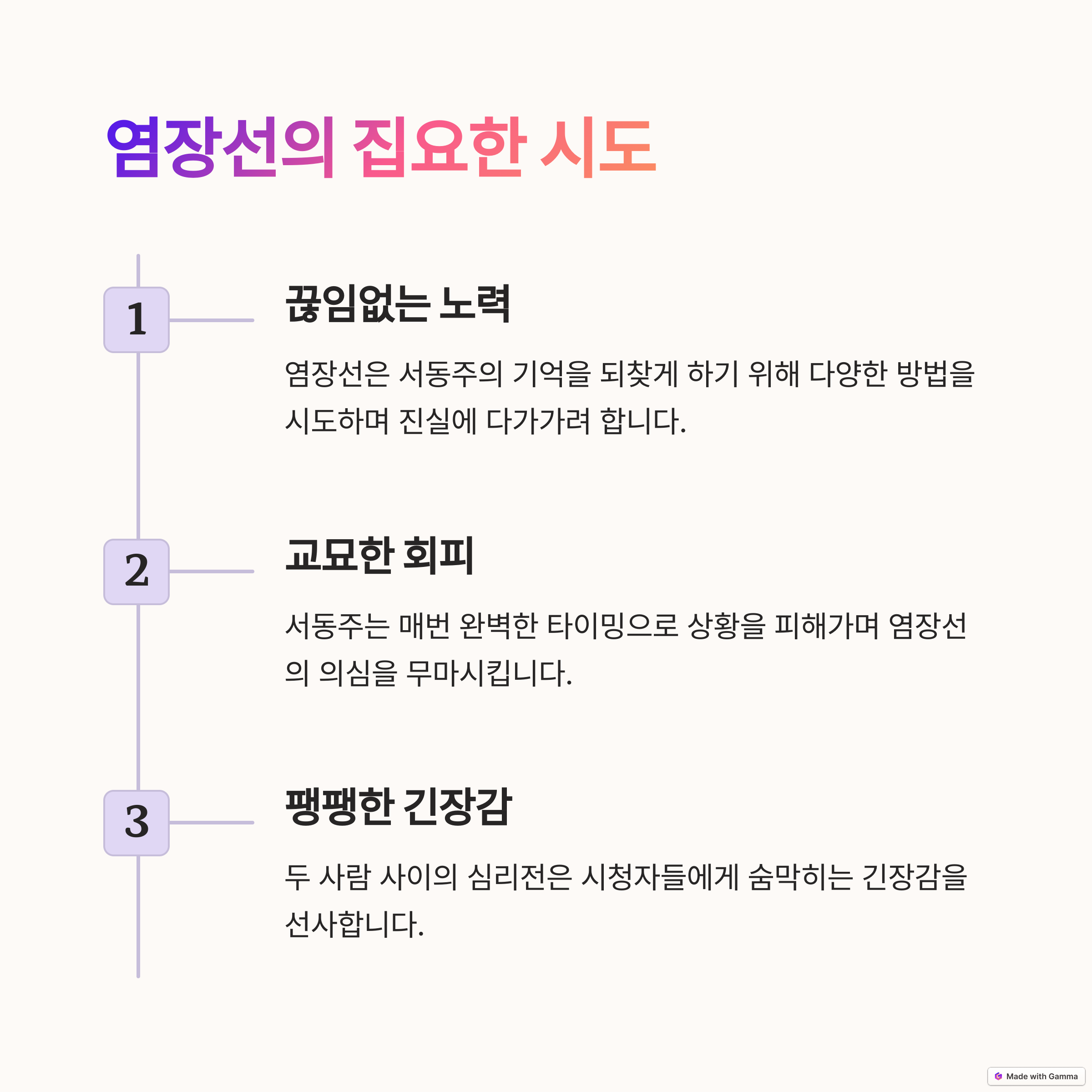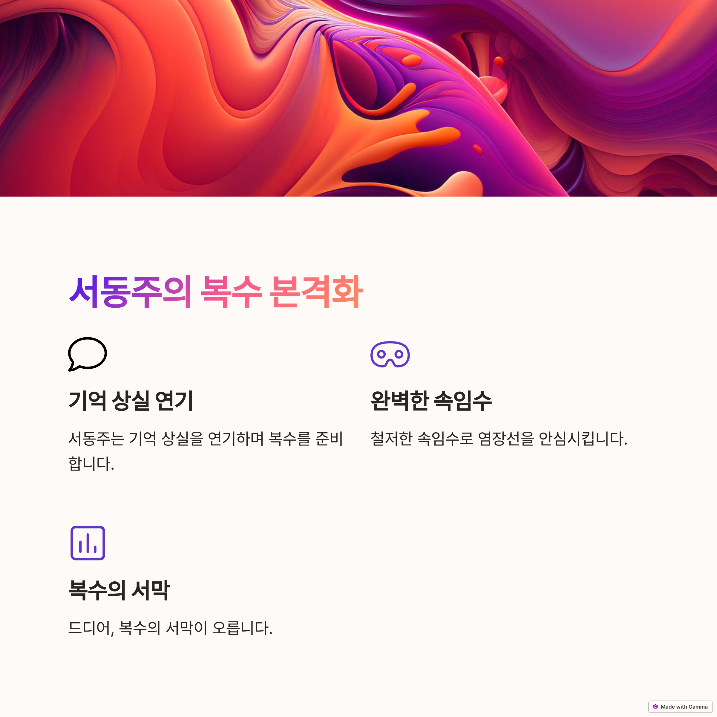 이번 화에서 '공비서'와 '성현'이라는 새로운 인물들이 언급되었으며, 이들이 서동주의 복수 계획과 깊은 관련이 있는 것으로 보입니다. 이들이 앞으로의 전개에서 어떤 역할을 하게 될지 기대됩니다.