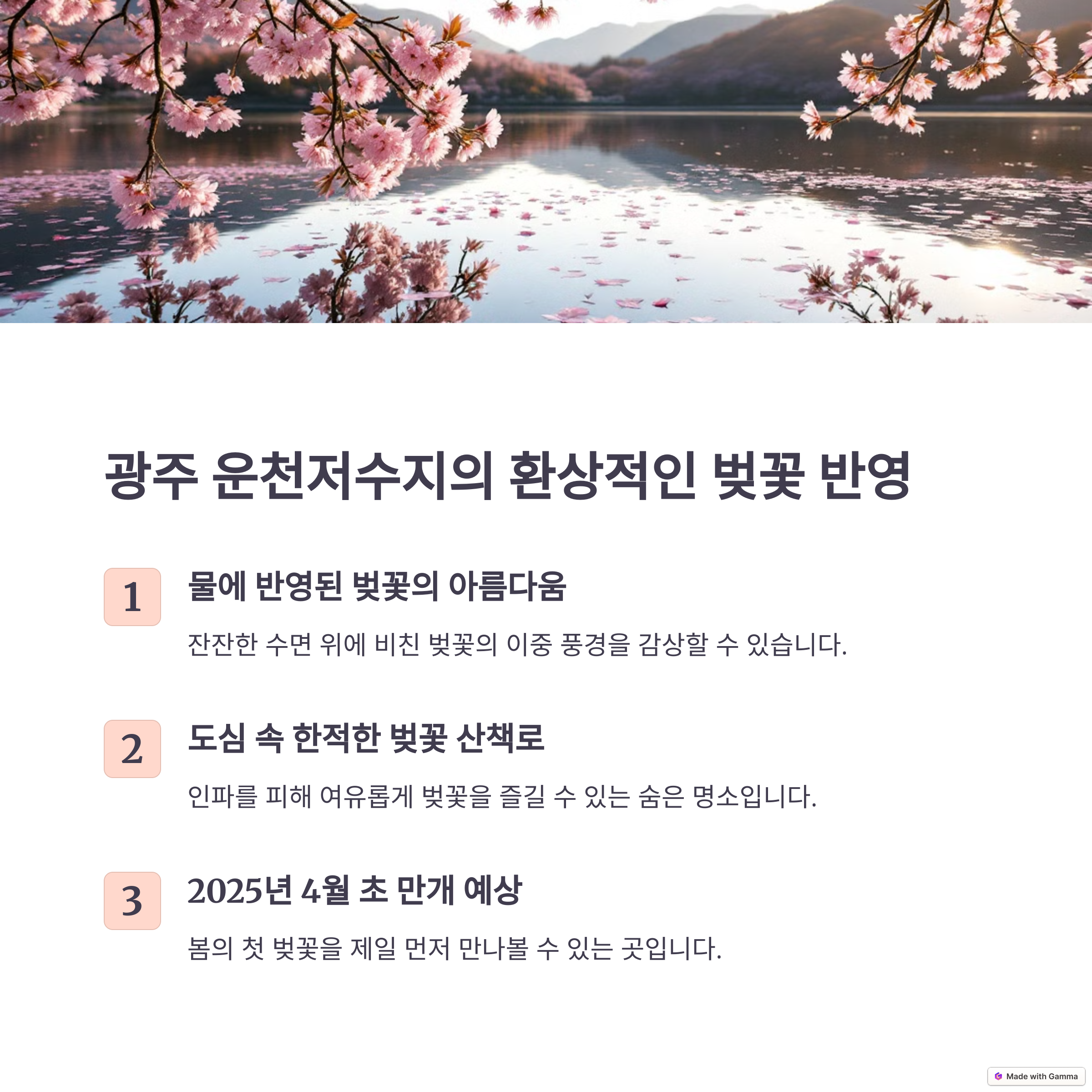 | 전라도 벚꽃 명소 | 광주 운천저수지, 전주 전북대학교, 여수 오동도 |