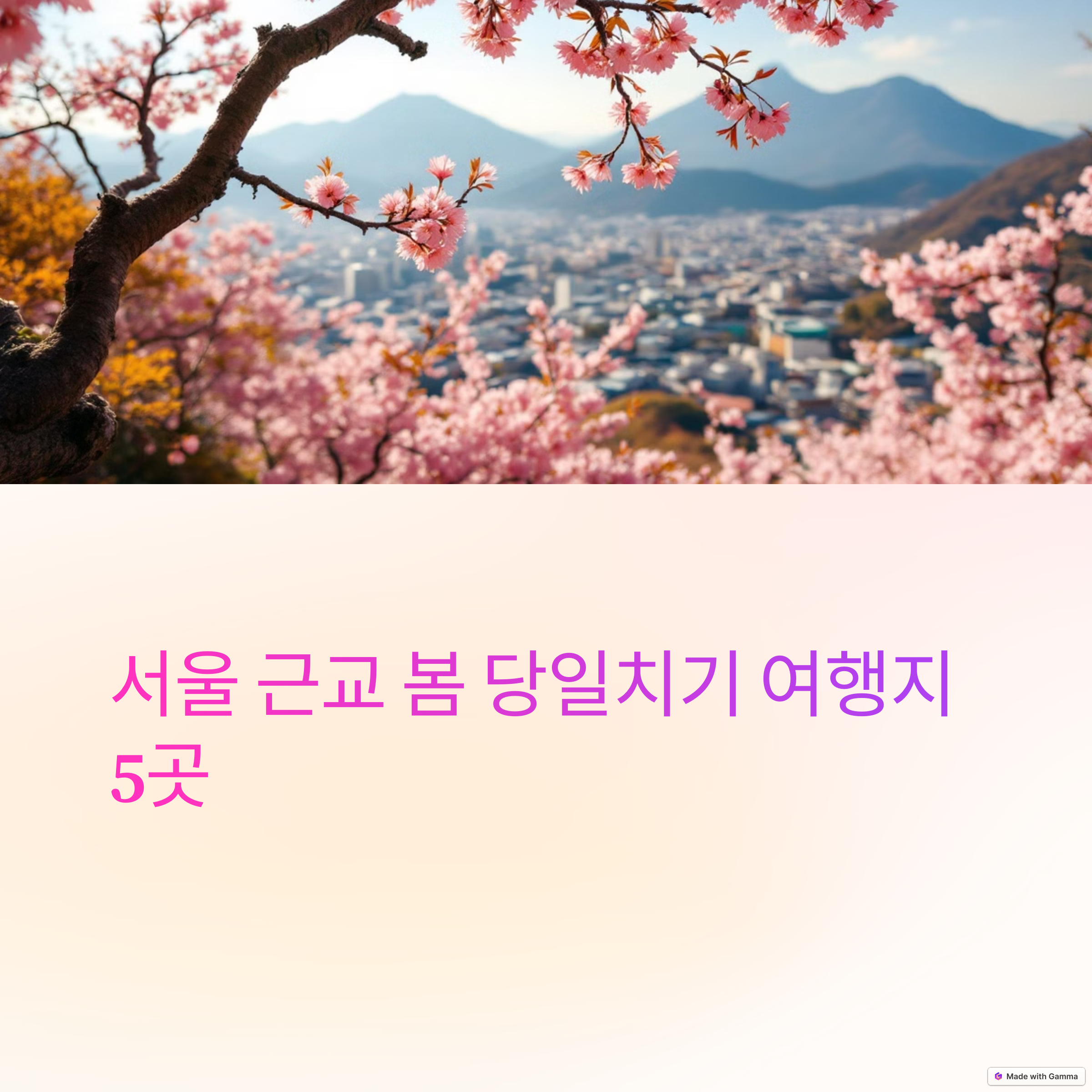 안녕하세요, 여행을 사랑하는 여러분! 봄이 찾아오면서 새로운 여행지를 찾고 계신가요? 하루 만에 다녀올 수 있으면서도 아름다운 풍경과 다양한 볼거리를 제공하는 곳을 찾기란 쉽지 않죠. 그래서 이번에는 서울 근교에서 즐길 수 있는 최고의 당일치기 여행지를 소개해 드리려고 합니다. 자연 속에서 힐링하고 싶다면? 역사적인 장소에서 의미 있는 시간을 보내고 싶다면? 여기 소개할 여행지들이 분명 여러분의 마음을 사로잡을 거예요! 그럼, 2025년 봄을 맞아 떠나기 좋은 서울 근교의 매력적인 여행지를 알아볼까요?