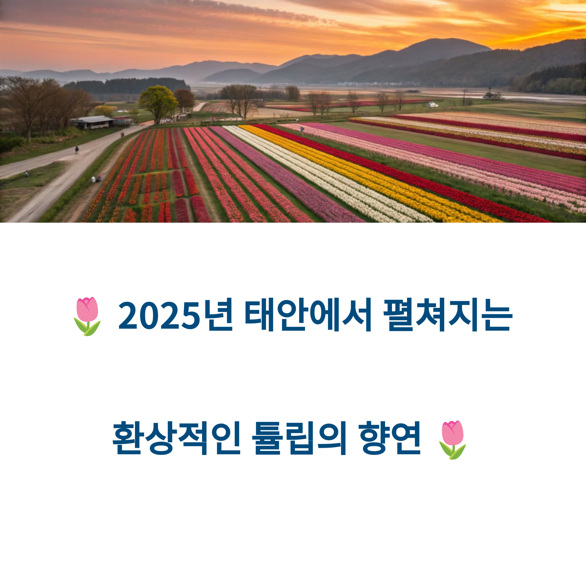 | 2025년 4월 8일 ~ 5월 6일 (29일간) | 튤립 정원, 자연과 조화된 공간 | 서울에서 약 2시간 거리 |