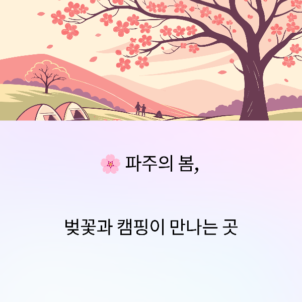 파주는 봄철 벚꽃과 다양한 봄꽃을 즐기며 캠핑을 할 수 있는 최적의 장소입니다. 이맘때가 되면 온 도시가 분홍빛으로 물들고, 자연 속에서 힐링을 즐기기에 더없이 좋은 환경을 제공합니다. 캠핑과 벚꽃놀이를 동시에 즐길 수 있는 특별한 장소들을 소개해 드릴 테니, 가족, 연인 또는 친구들과 함께 아름다운 봄의 추억을 만들어보세요!