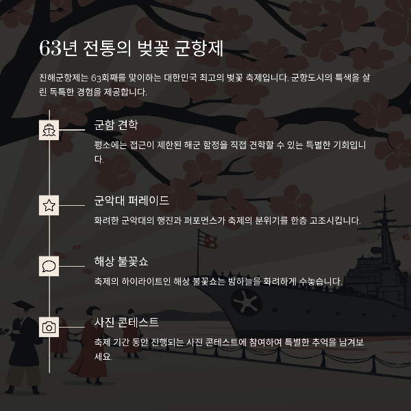 여의도 봄꽃축제에서는 1.7km의 벚꽃 거리를 따라 화려한 벚꽃을 감상할 수 있으며, 실시간 군중 모니터링 시스템을 통해 보다 쾌적한 관람이 가능합니다. 한편 진해군항제는 국내 최대 벚꽃축제로 체리블라썸 뮤직 페스티벌과 K-POP 댄스 경연대회가 열려 더욱 풍성한 볼거리를 제공합니다.