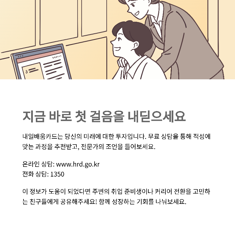 안녕하세요! 취업과 자기계발을 위한 가장 확실한 방법 중 하나인 내일배움카드에 대해 소개해 드리겠습니다.