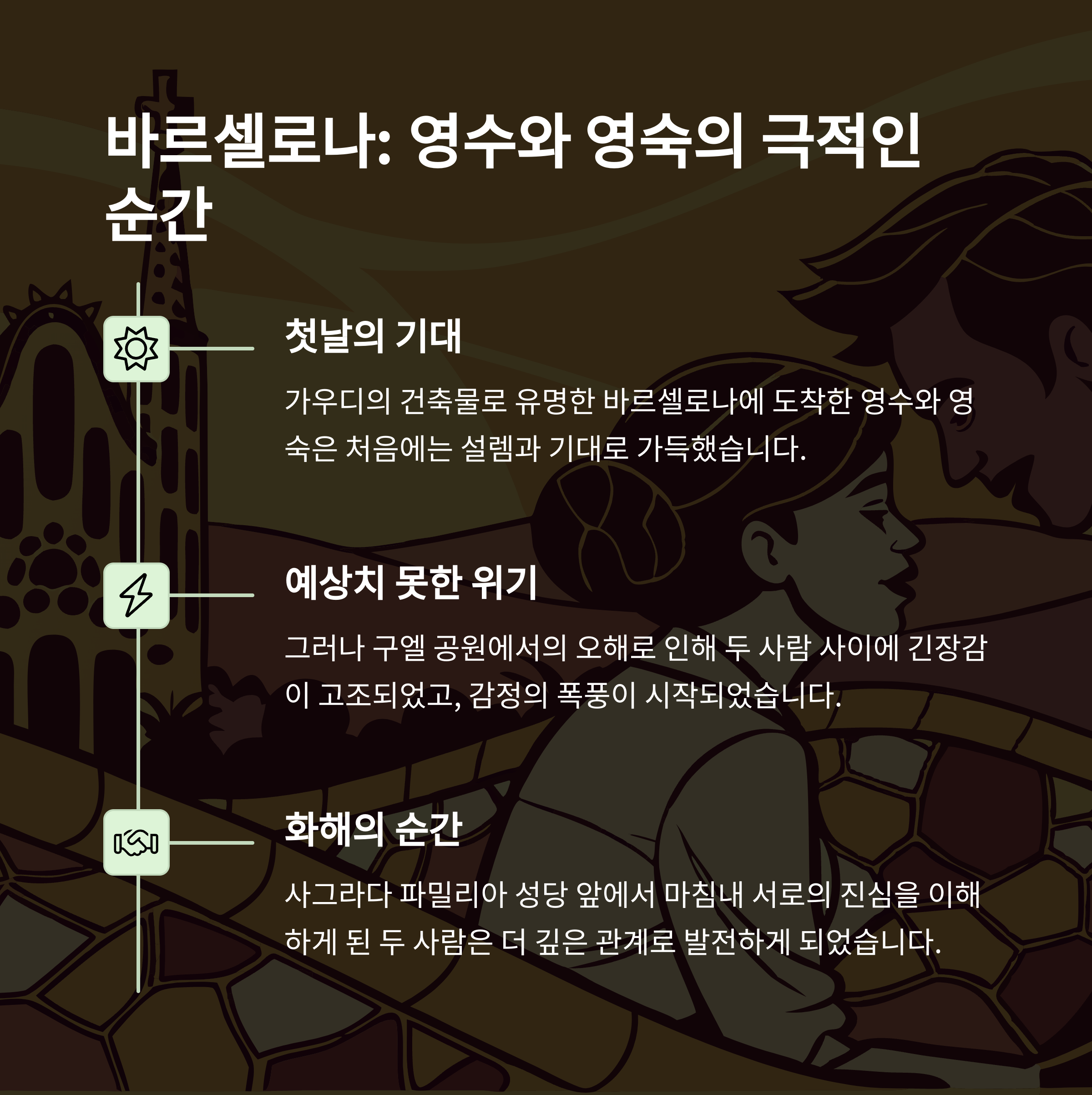 스페인 바르셀로나에서 22기 영수와 영숙은 과거 이루어지지 못한 관계를 재조명하는 과정에서 예상치 못한 사건과 극적인 감정 변화를 겪으며 시청자들의 이목을 끌었습니다.