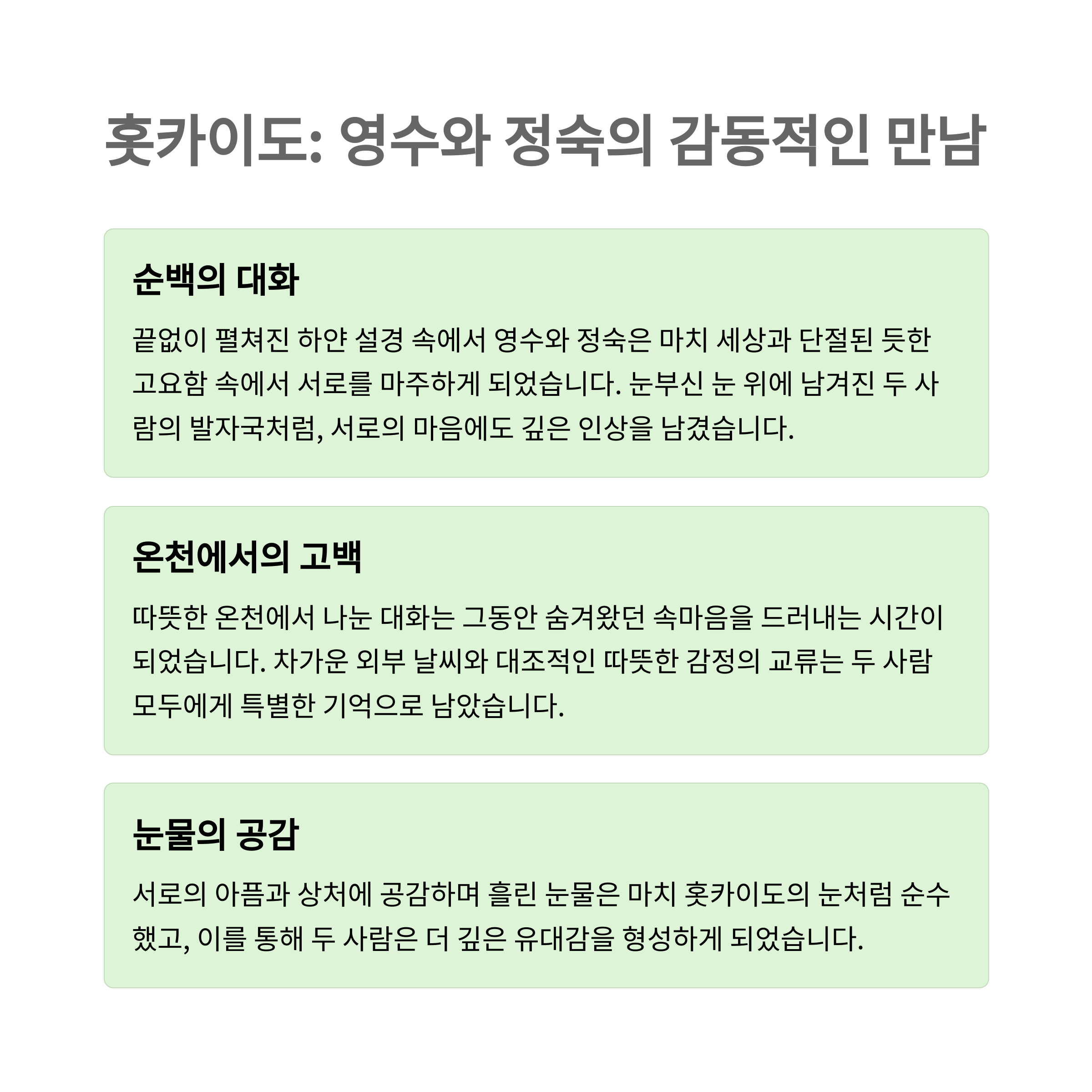 눈 내리는 아름다운 풍경 속에서 진행된 두 사람의 대화는 시청자들에게 진정성 있는 감정을 전달하며 깊은 공감을 얻었습니다.