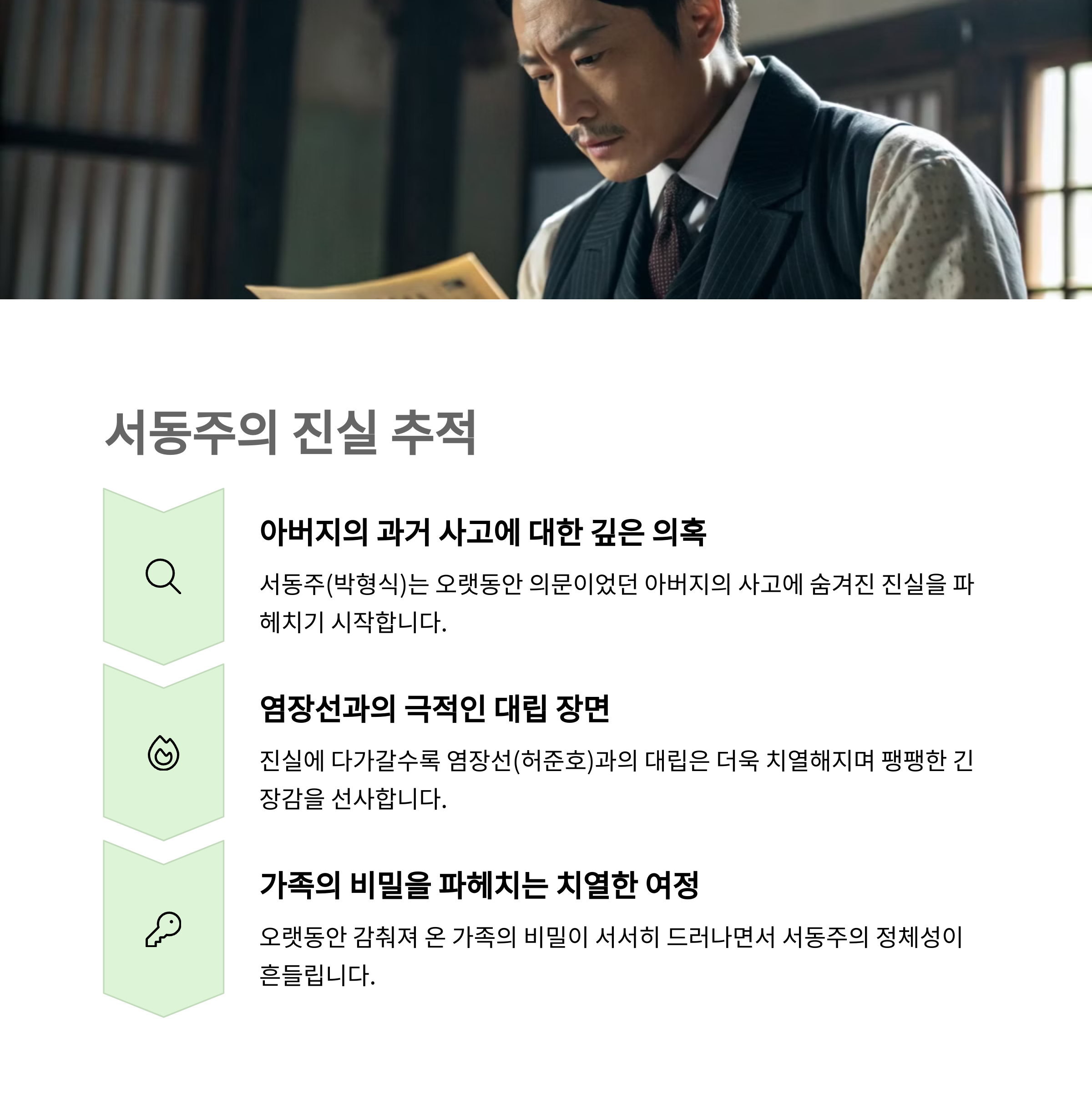 이번 12화는 말 그대로 ‘폭풍 전개’였습니다. 주인공 서동주(박형식)는 자신의 과거를 파헤치며 점점 깊은 어둠 속으로 빠져들죠. 아버지의 정체를 추적하는 과정에서 염장선(허준호)과의 갈등은 최고조에 이르고, 과거에 대한 진실들이 하나씩 드러나며 모든 것이 뒤집히기 시작합니다. 특히 마지막 장면, 염장선이 서동주를 향해 방아쇠를 당기는 그 순간은 전율 그 자체.