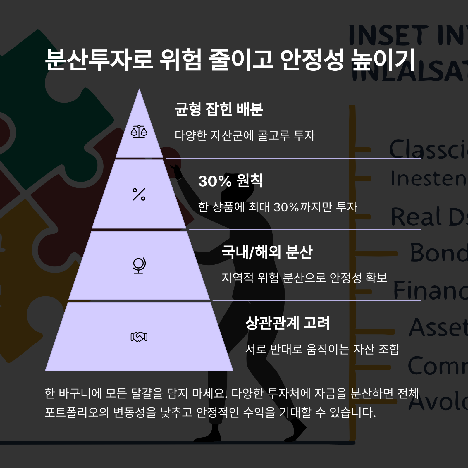 - 분산 투자: 주식, 금, 리츠 등 다양한 자산에 나눠서 리스크 분산