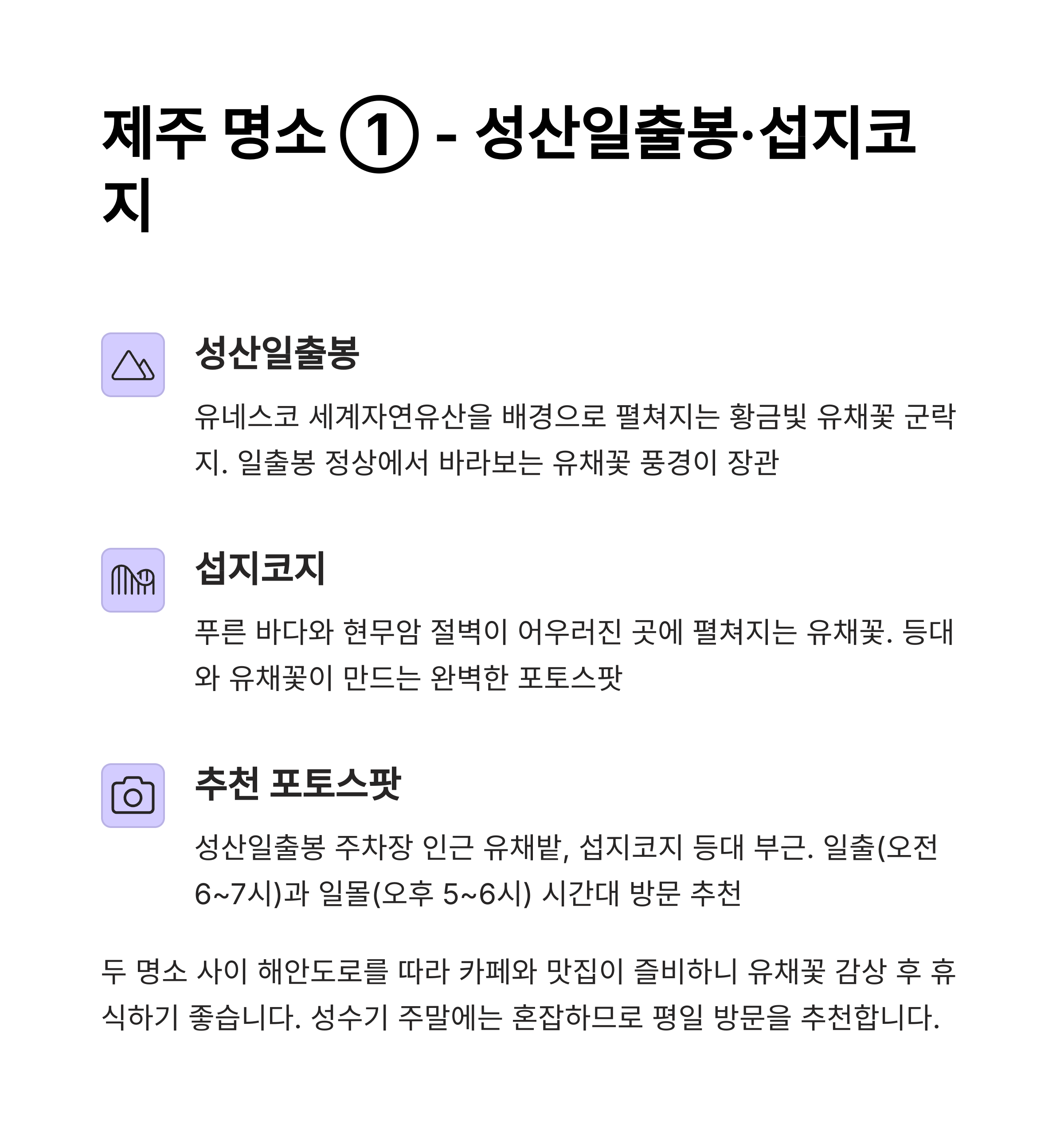 - 성산 광치기해변: 유채꽃 + 성산일출봉의 환상적 조합