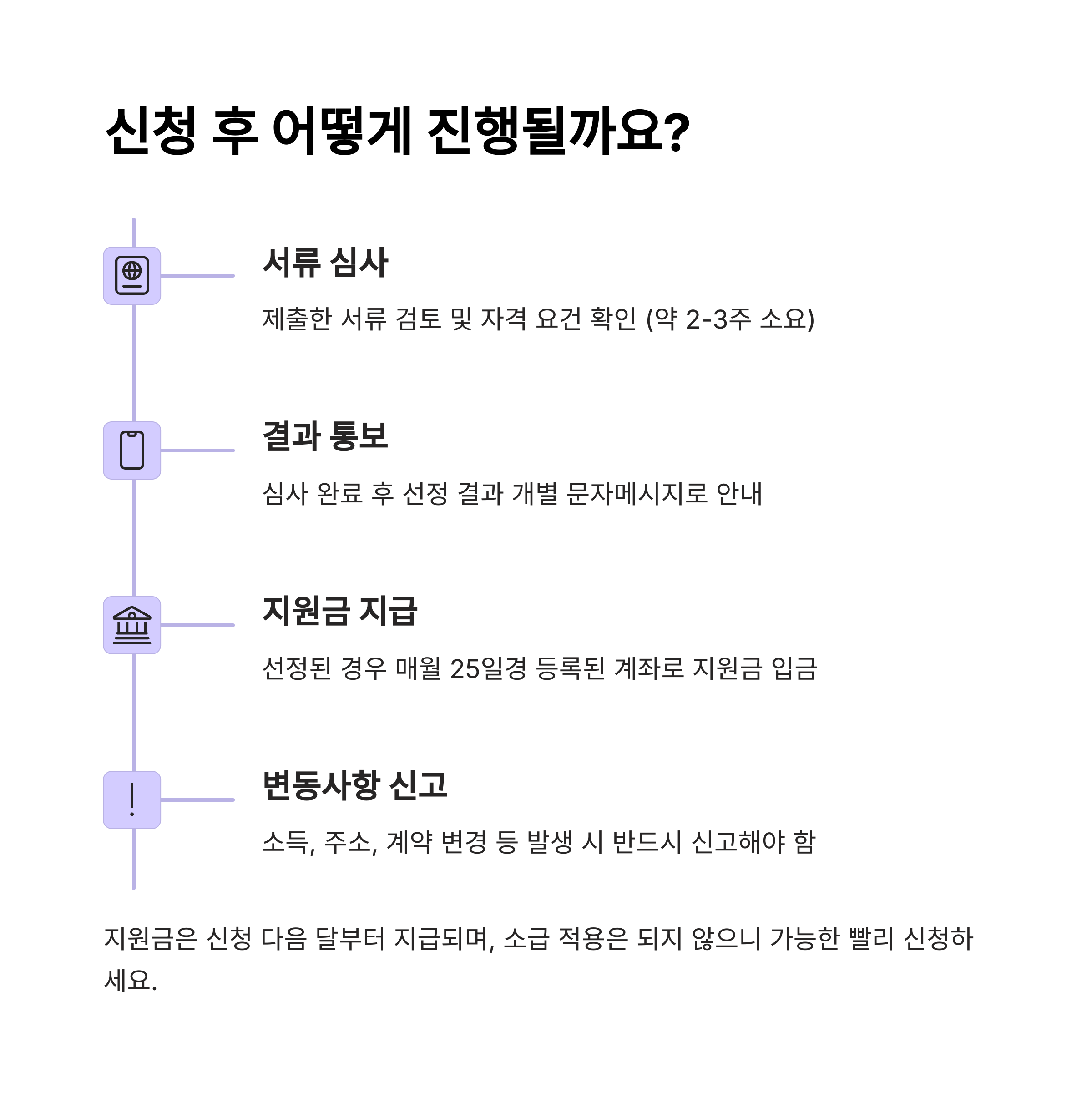 - 지원금은 순수 월세금에만 적용 (보증금, 관리비 제외)
