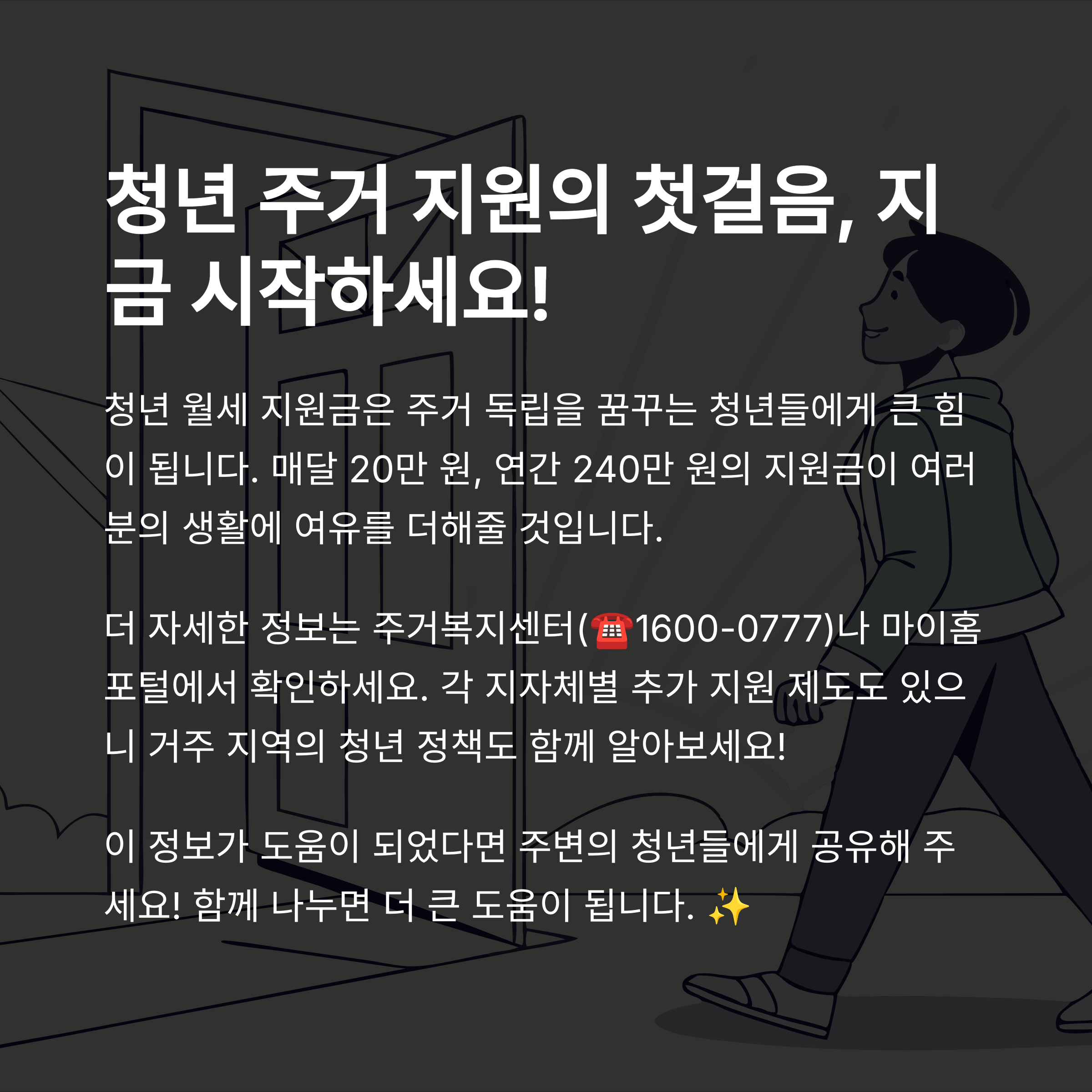 청년이라면 누구나 도전할 수 있는 소중한 기회! 월세에 허덕이기만 했던 지난날은 잊고, 지금 바로 복지로에서 청년월세 지원금 신청하세요 ✅