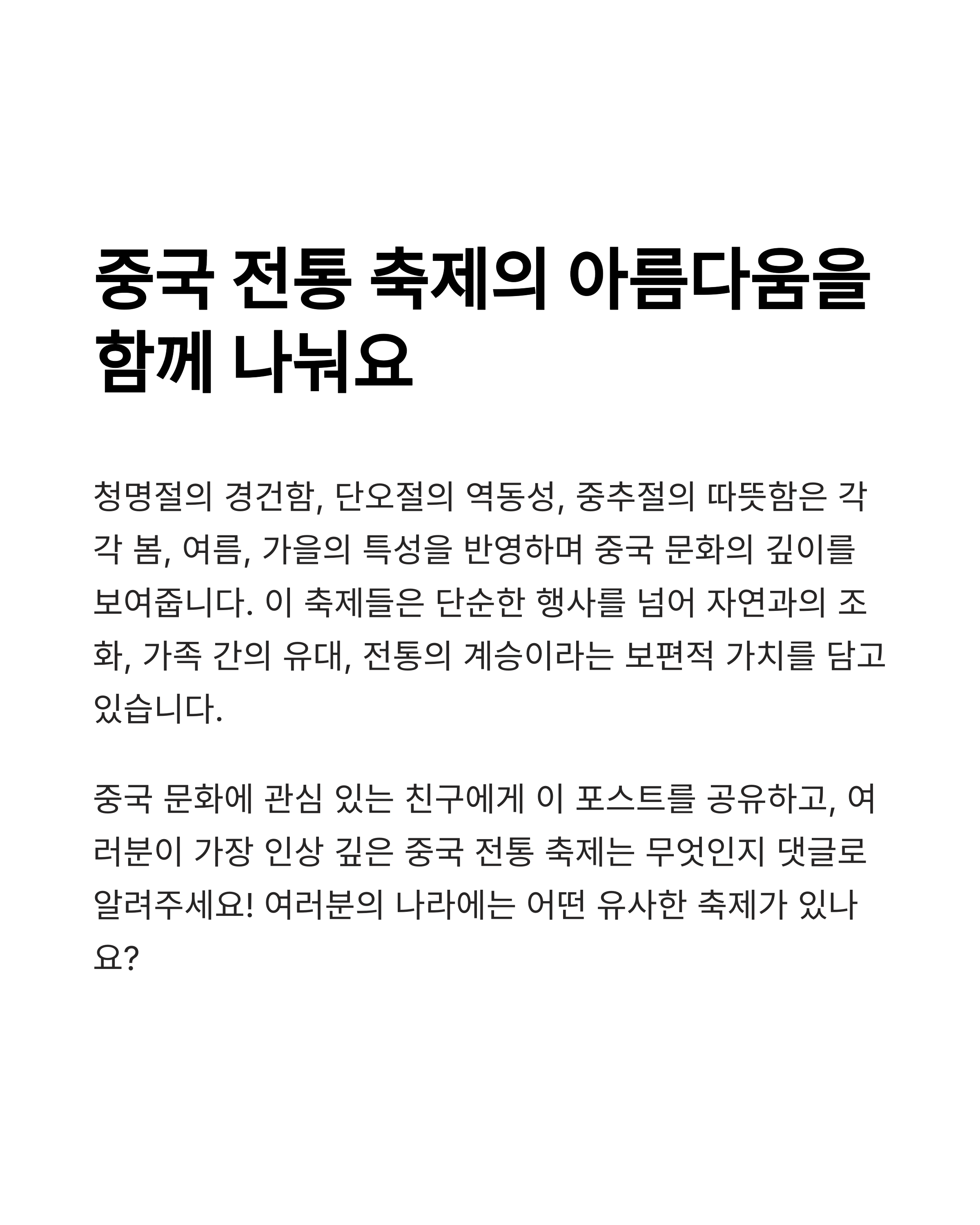 중국에는 단순한 공휴일이 아니라, 조상과 자연, 공동체를 잇는 깊은 의미의 축제들이 있습니다. 여러분은 몇 개나 알고 계셨나요?