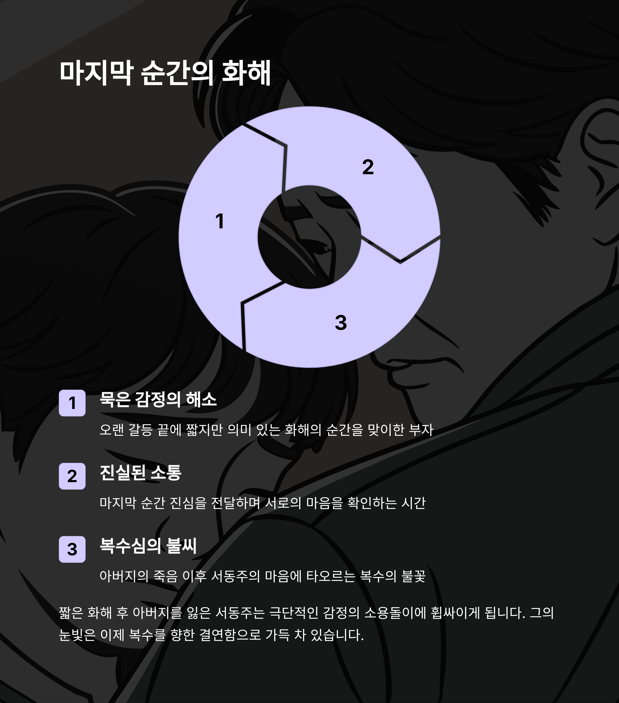- 부친의 죽음으로 분노의 감정 폭발
