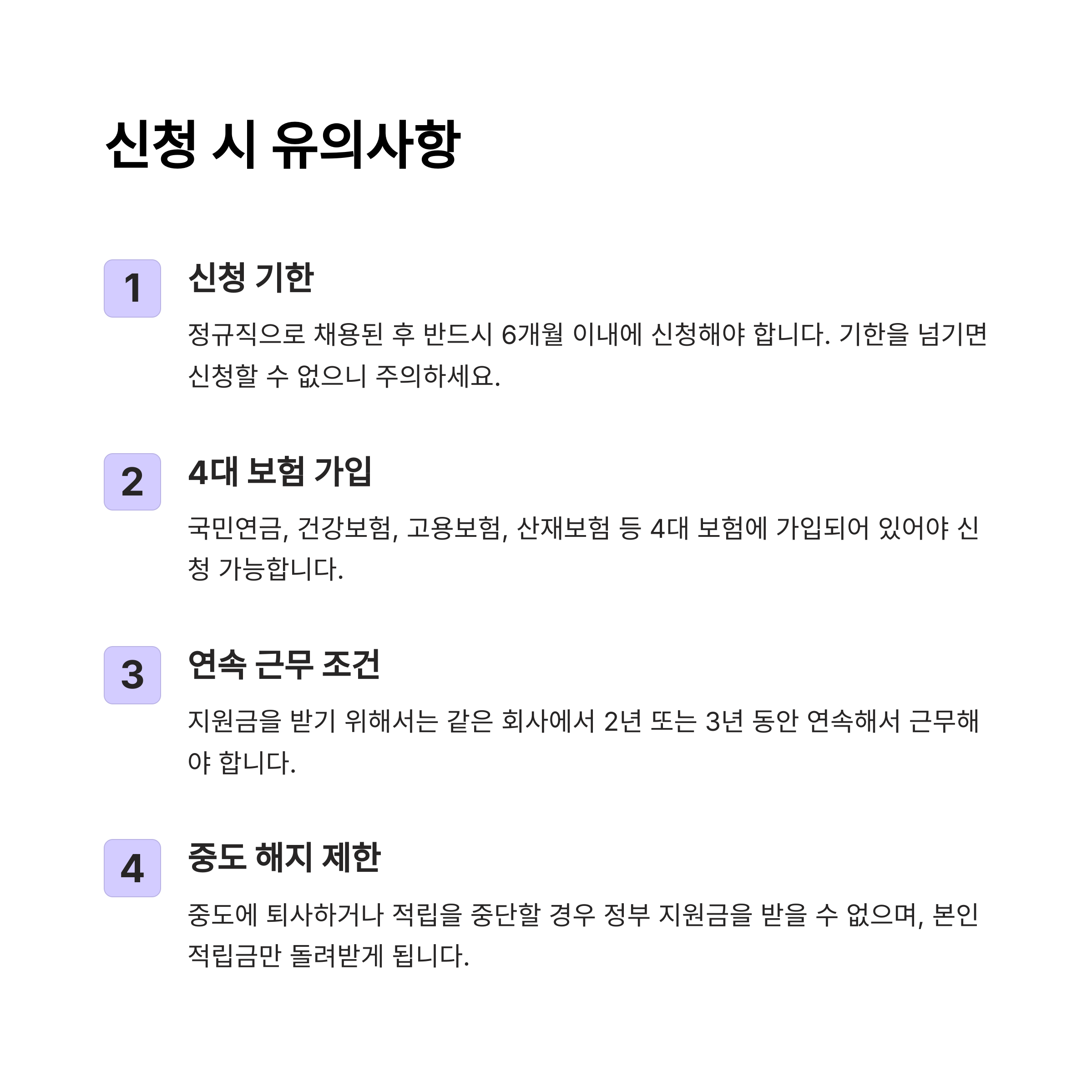 - 정규직 채용일로부터 6개월 이내에 신청해야 해요!