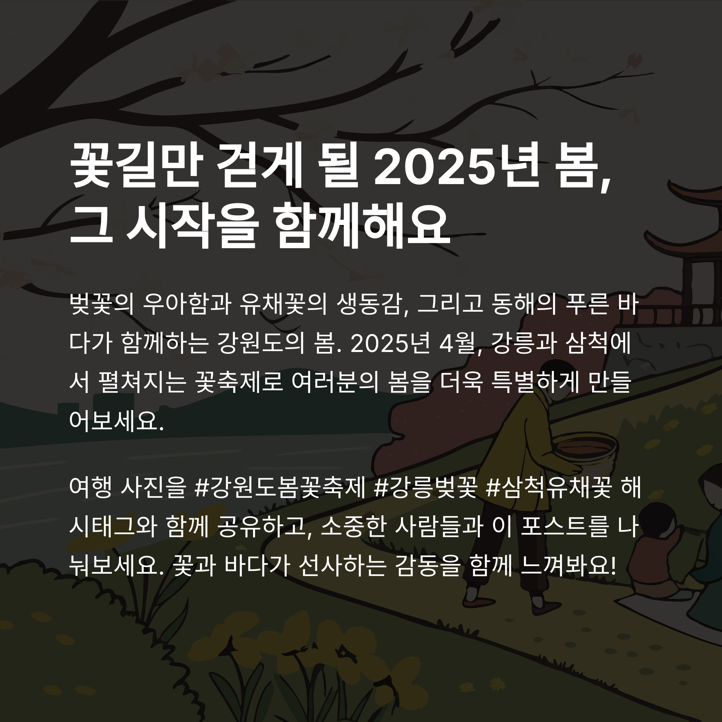 벚꽃과 유채꽃 사이에서 고민 중이신가요? 같은 시기, 다른 매력으로 찾아오는 강릉과 삼척 봄축제! 어디로 떠나야 후회 없을까요?