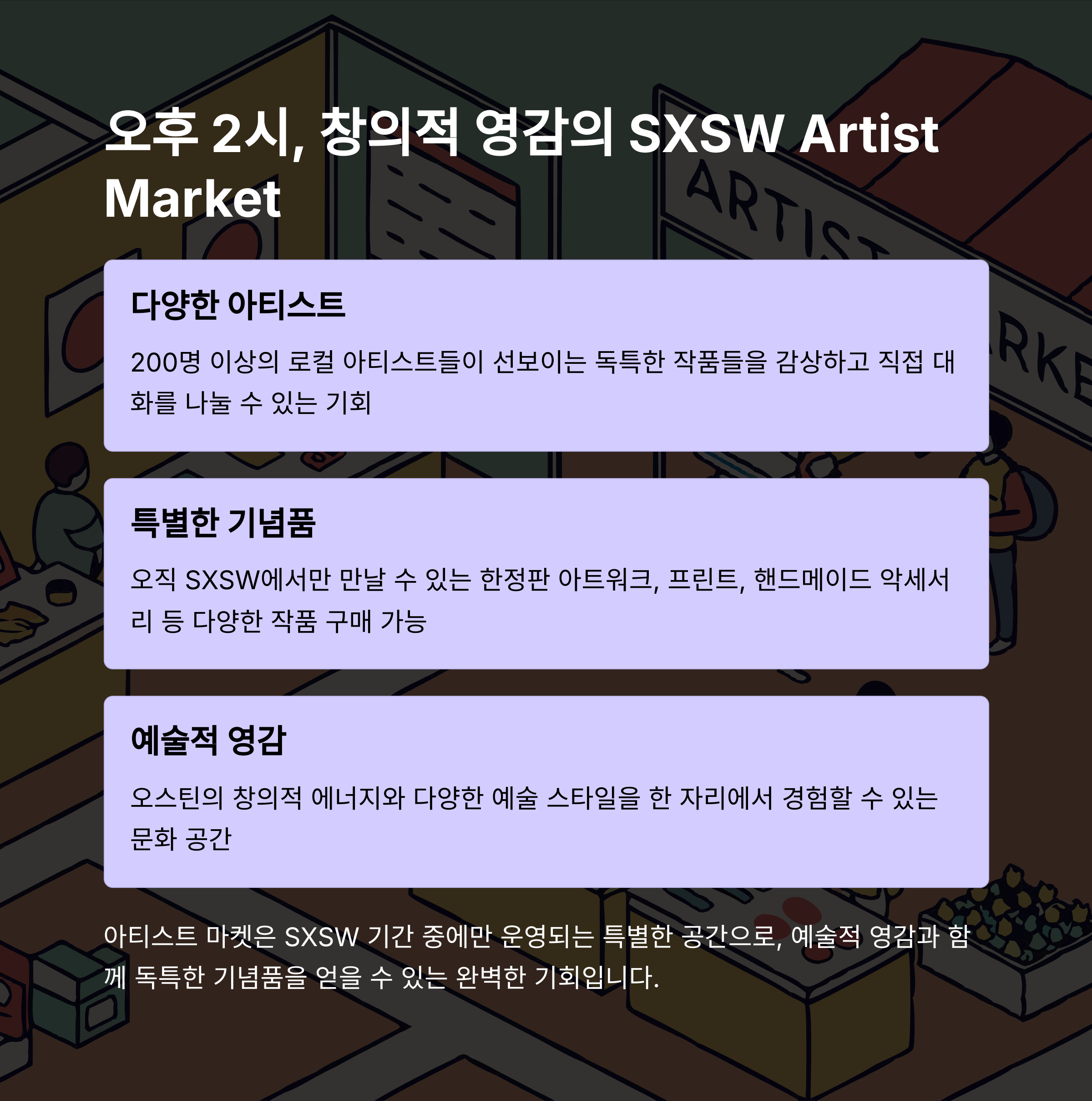 일정 짜기부터 네트워킹 정리까지, SXSW를 단순한 여행이 아닌 경험 자산으로 남기고 싶은 분께 이 시리즈를 추천합니다.