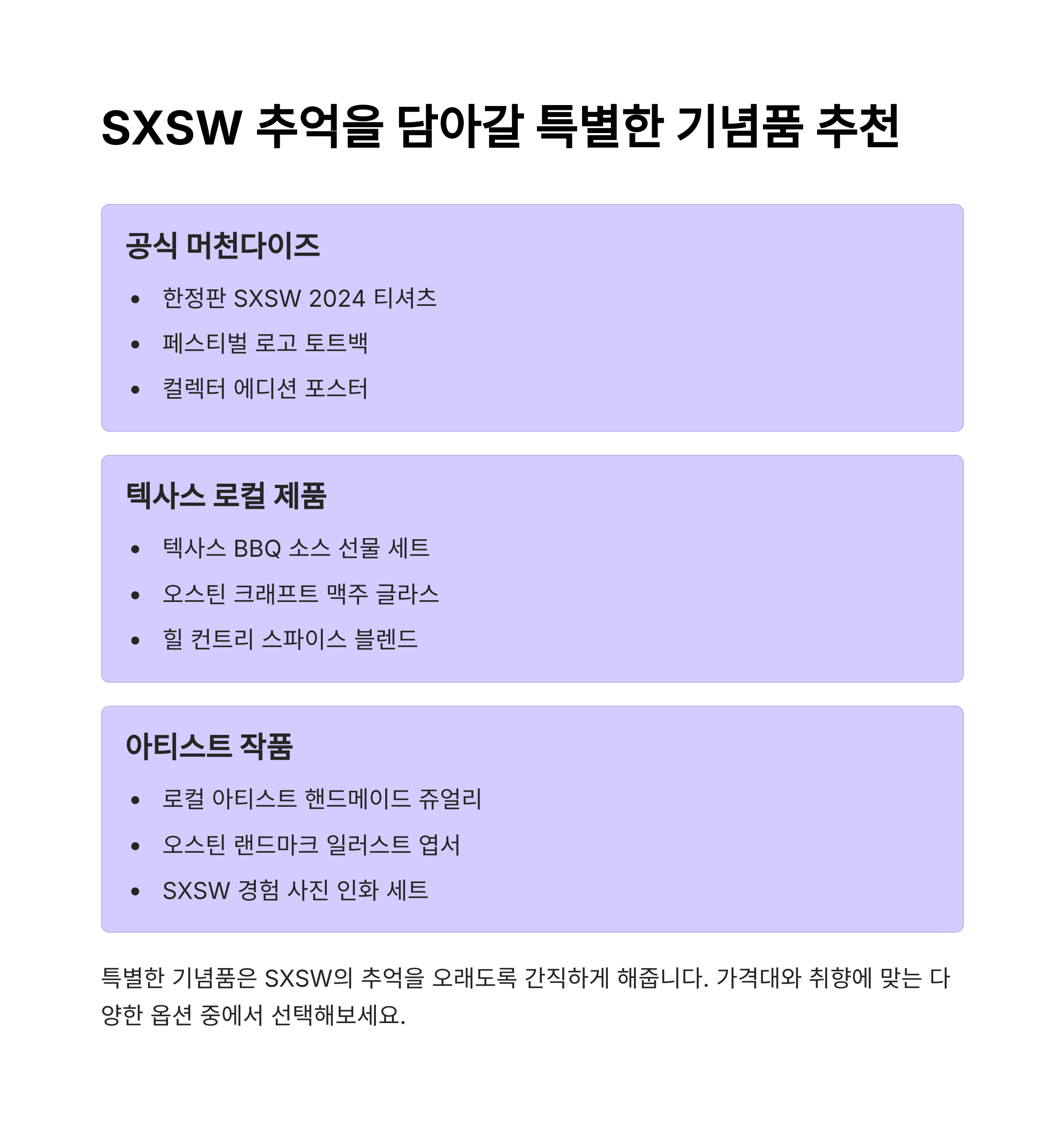 - 1. SXSW 공식 굿즈 (티셔츠/스티커/머그)