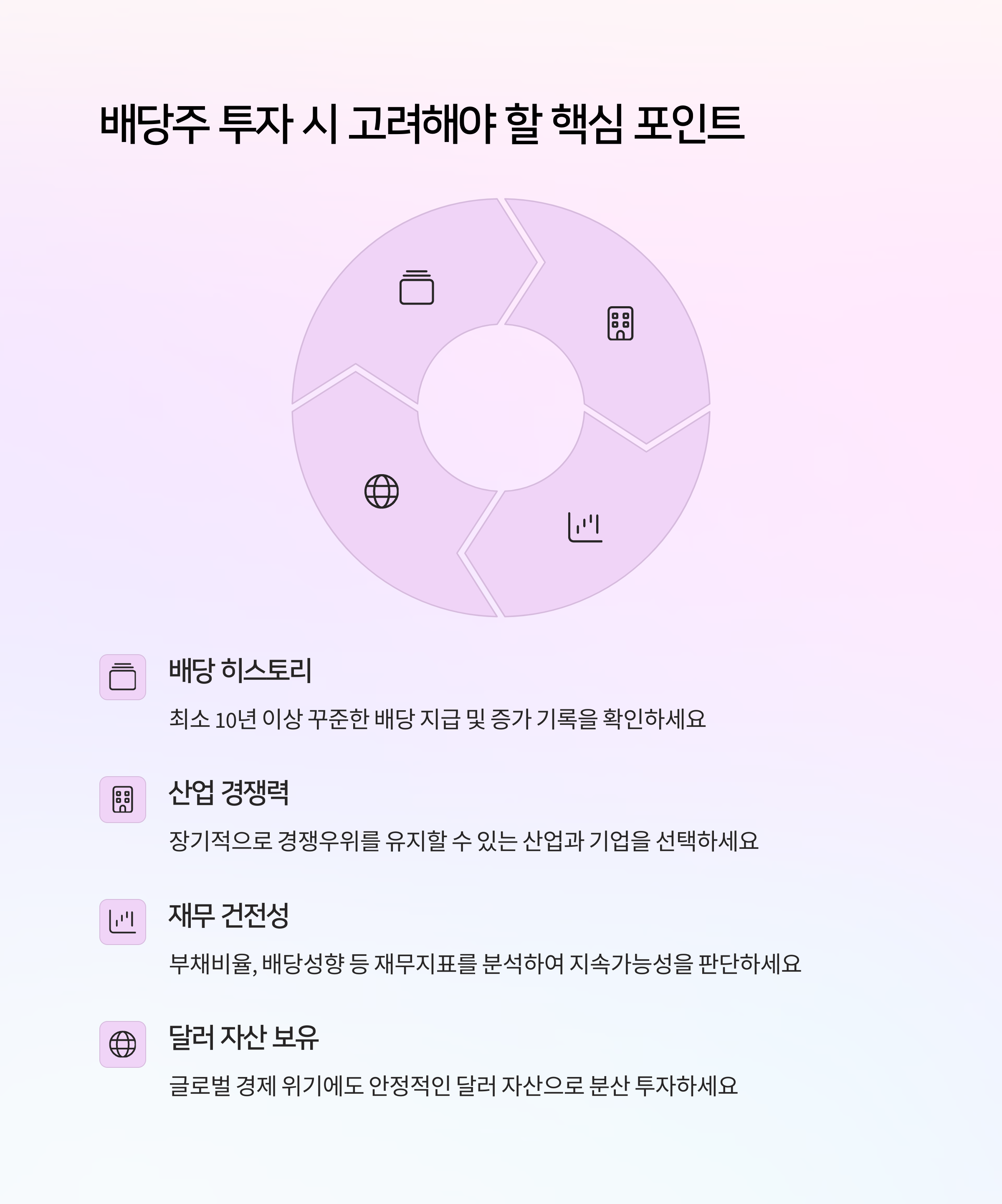 | 성장형 배당주 | 애플, MS | 기술 성장 + 배당 시작 기업 |