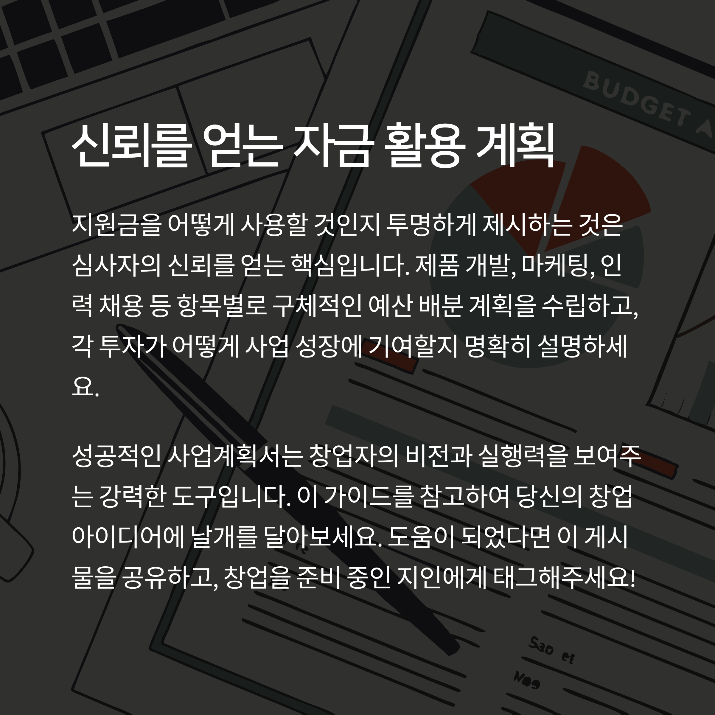 실제로 많은 심사위원들이 말합니다. “계획서 한 장 보면 창업자가 준비된 사람인지 아닌지 금방 알 수 있다.”