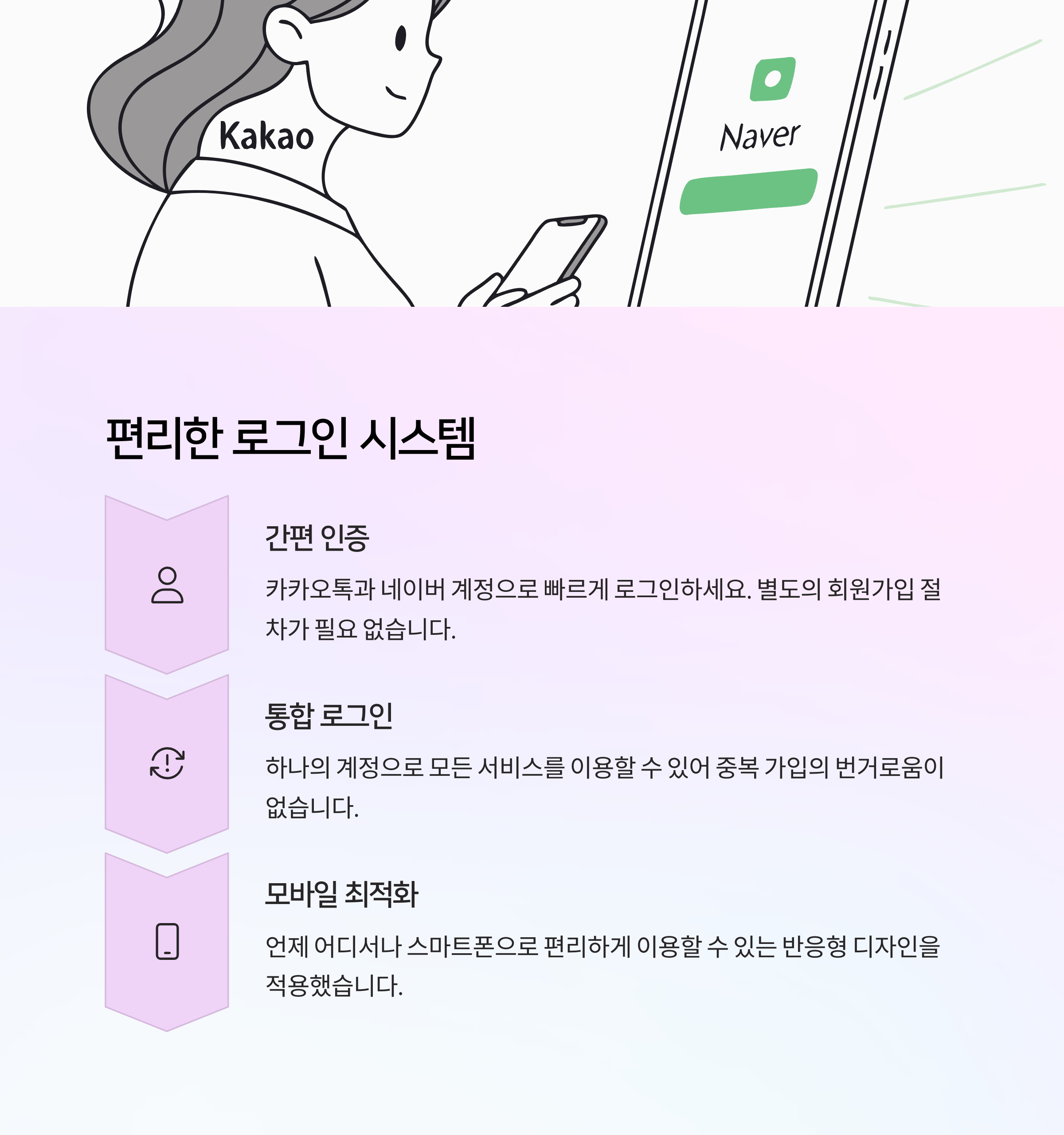 | 카카오/네이버 간편 인증 | SNS 계정만 있으면 빠르게 로그인 가능 |