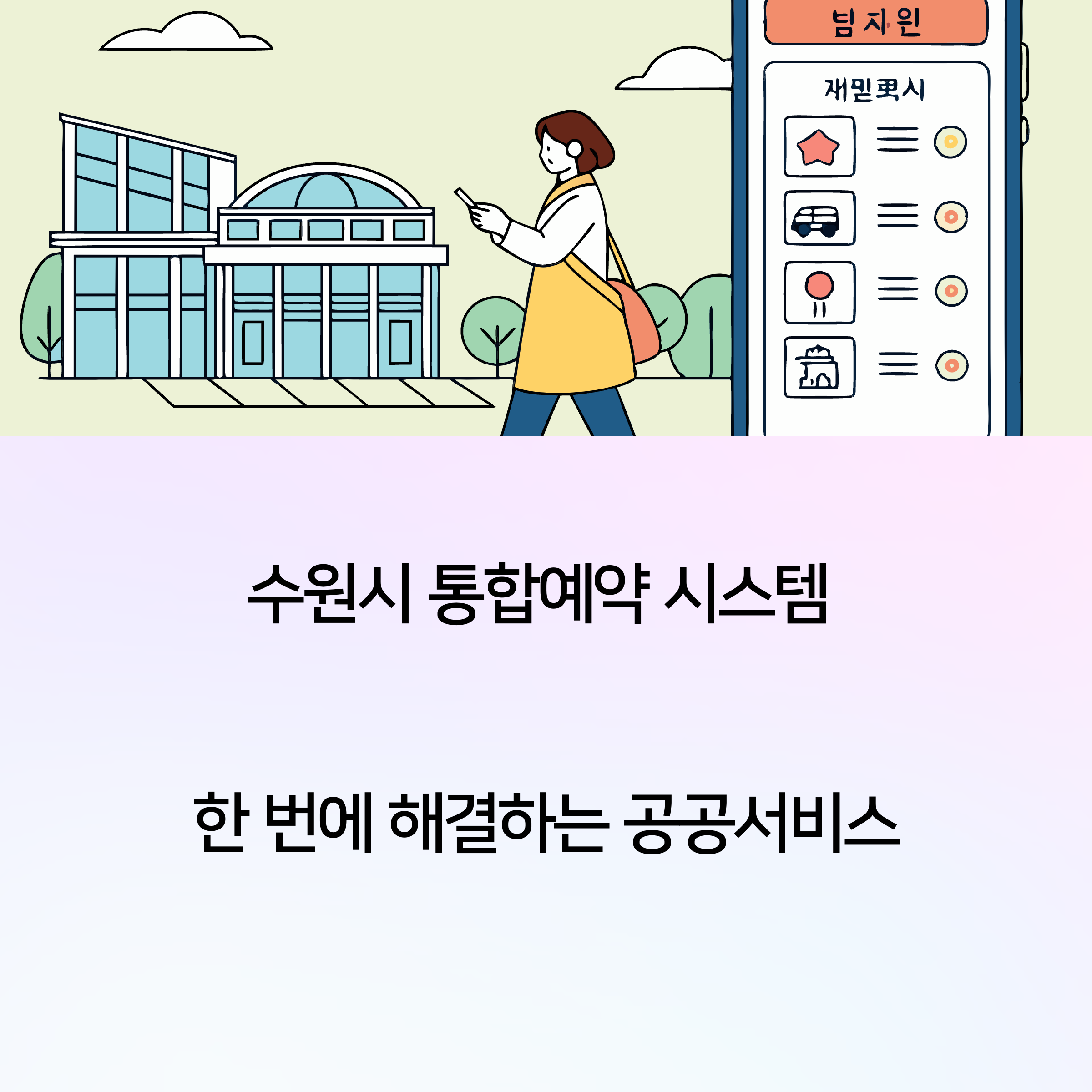 이번 2탄에서는 수원시 통합예약 시스템을 살펴볼게요. 교육·체육·문화·시설 대관 등 다양한 서비스를 하나로 묶어 시민들에게 실질적인 변화를 준 대표적인 사례 중 하나랍니다. 과연 어떤 점이 다를까요? 지금부터 자세히 알아볼게요!