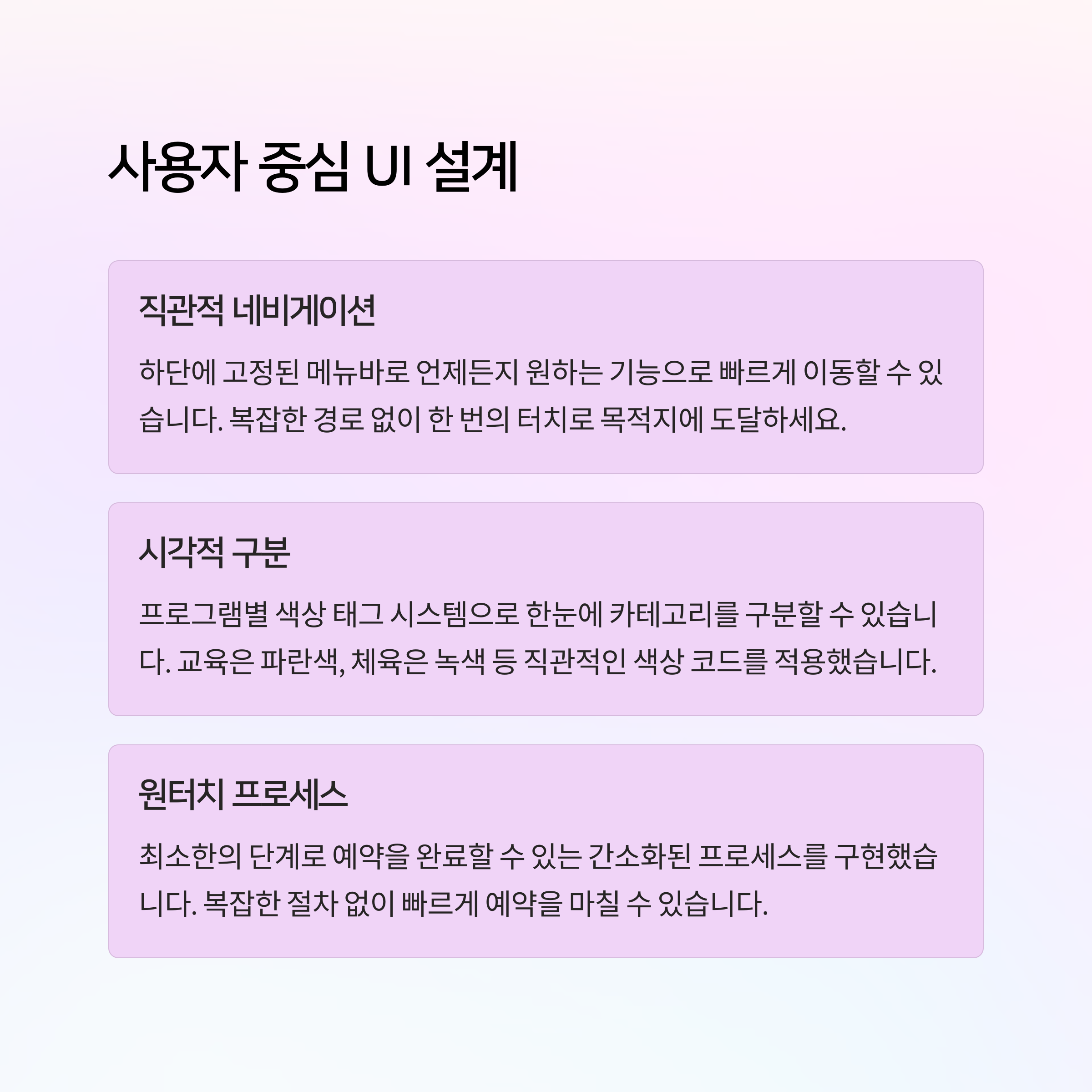 | 이○진 (중동) | “앱이 아닌데 앱 같아요. 진짜 UI 깔끔하고 속도 빠르고... 강좌 신청도 1분 컷!” |