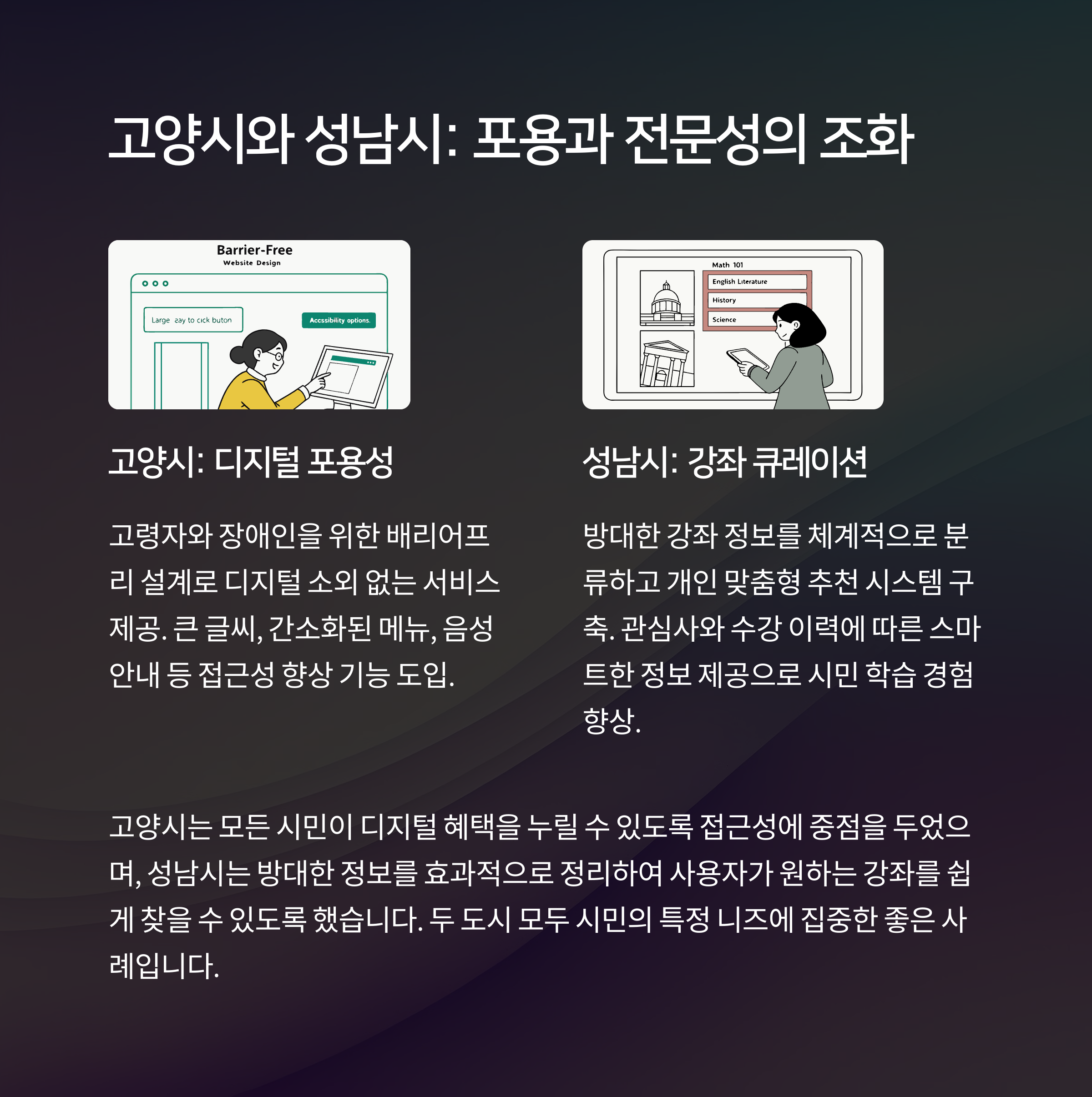 | 고양시 | 디지털 약자 배려 중심 | ★★★☆☆ | ★★★★★ | ★★★★☆ |