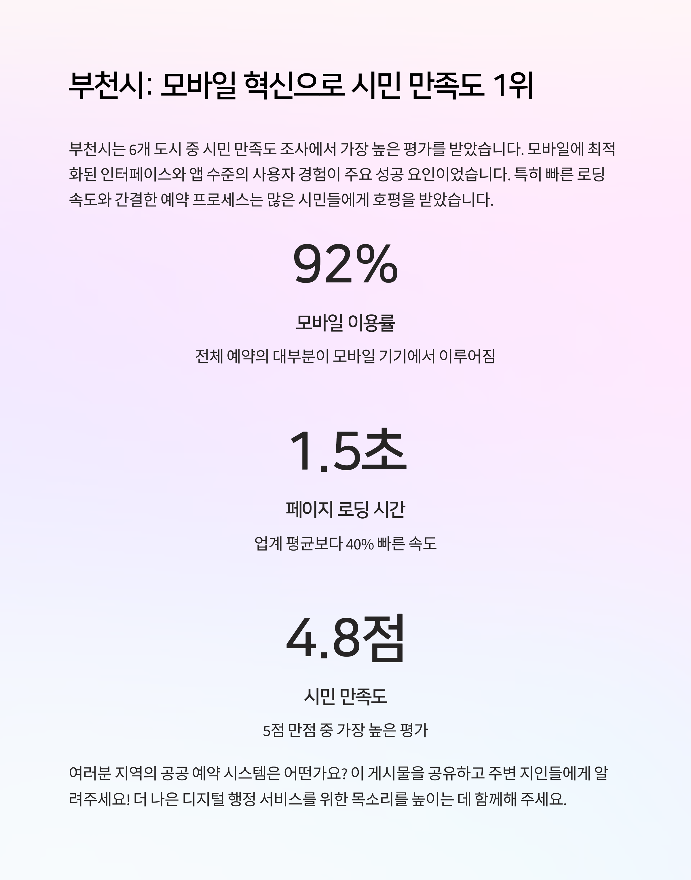 - 부천시: 모바일 전용 설계와 속도 중심의 UX