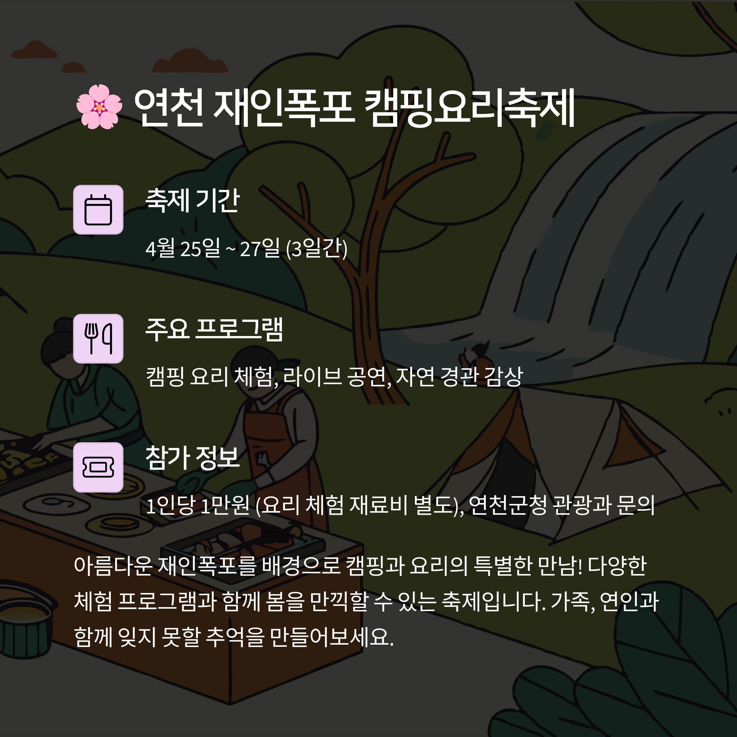 | 연천 재인폭포 캠핑요리축제 4.25(금)~4.27(일), 경기도 연천군 |