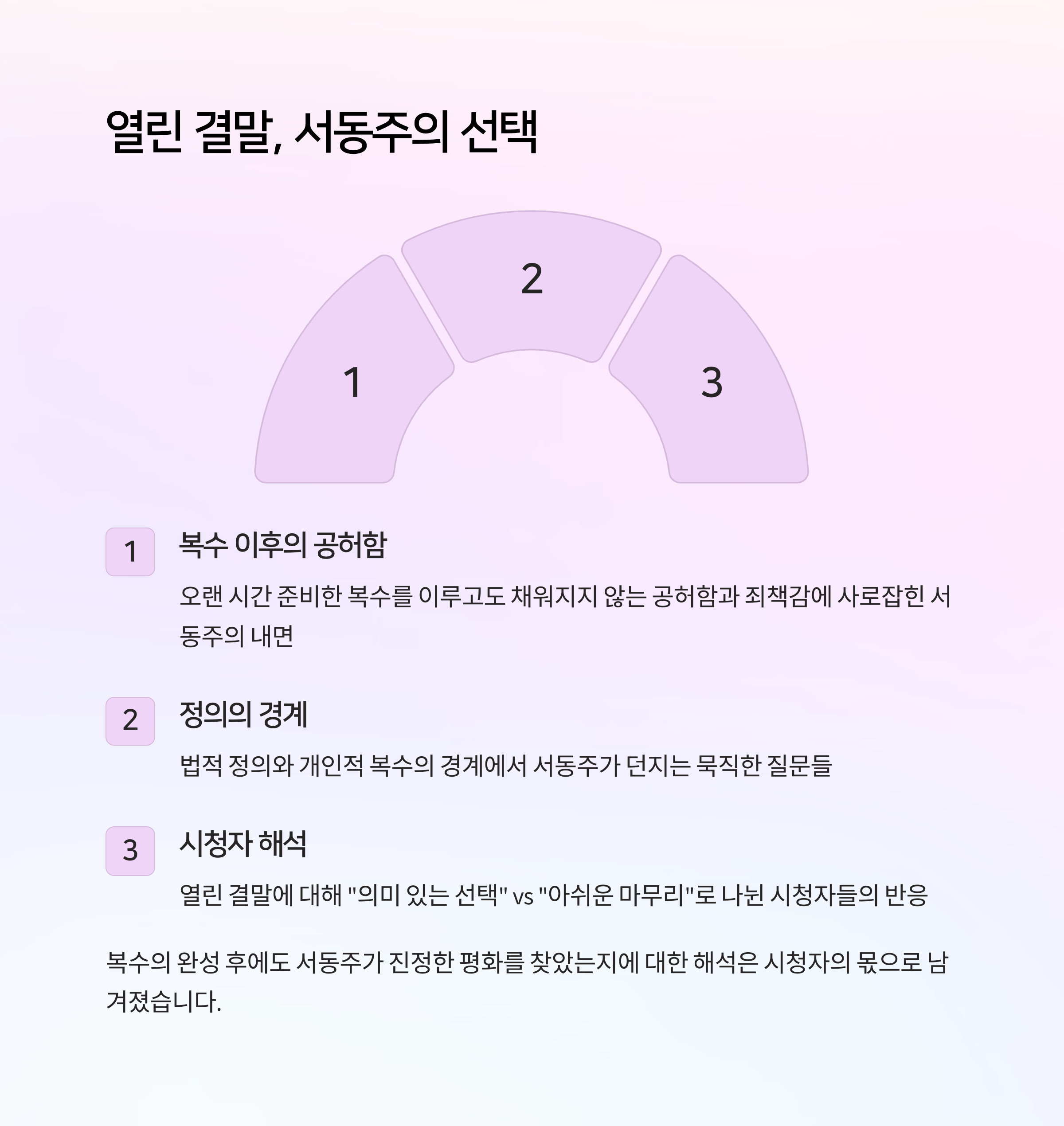 - 열린 결말이 남긴 철학적 질문: 정의란 무엇인가