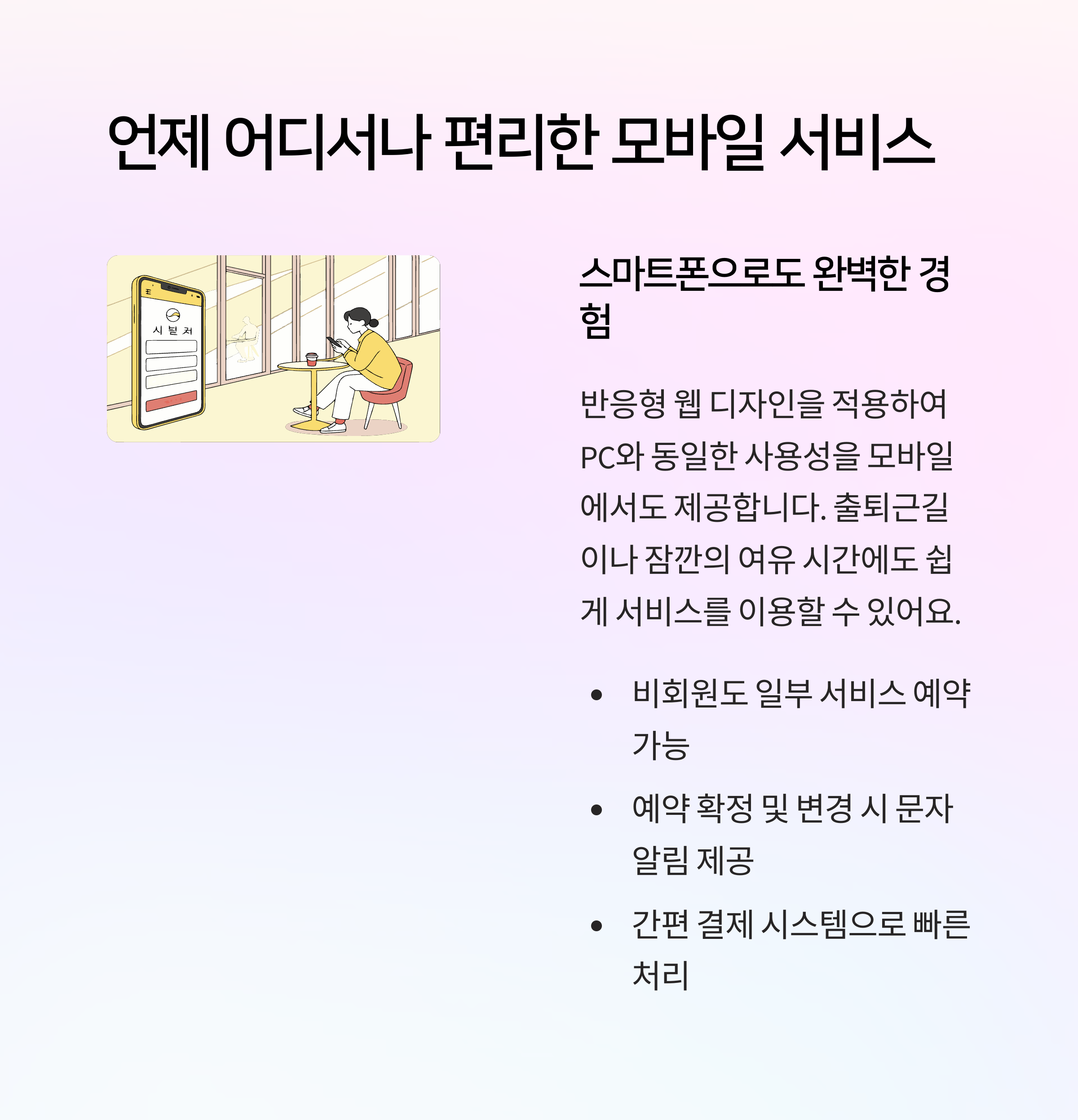 - 일부 서비스는 비회원 예약도 가능하지만, 대부분은 회원가입 권장