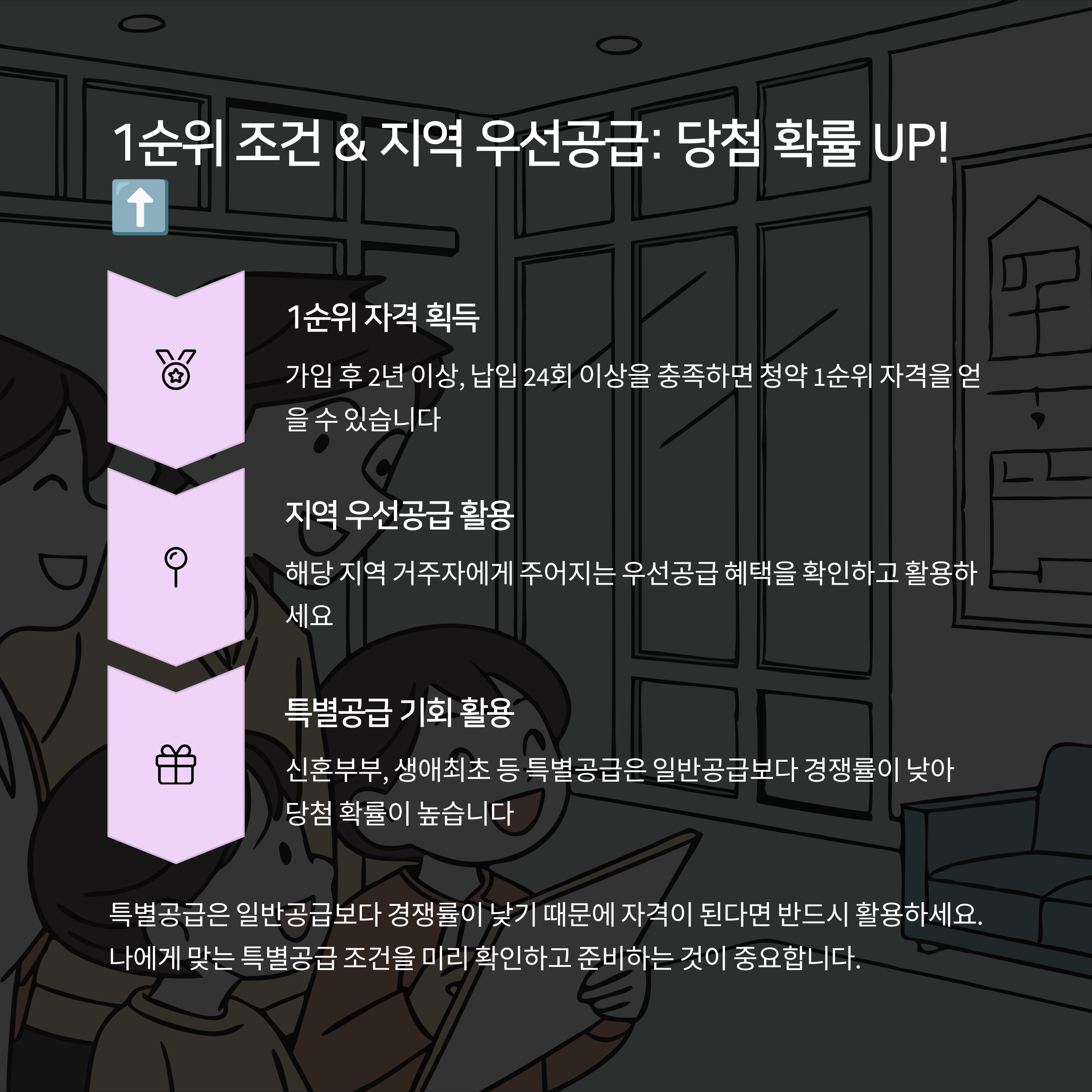 - 28세 사회초년생 C씨 (대전 거주): 통장 2년 유지 후 생애최초 특별공급 신청 → 추첨제 경쟁률 2:1에서 당첨!