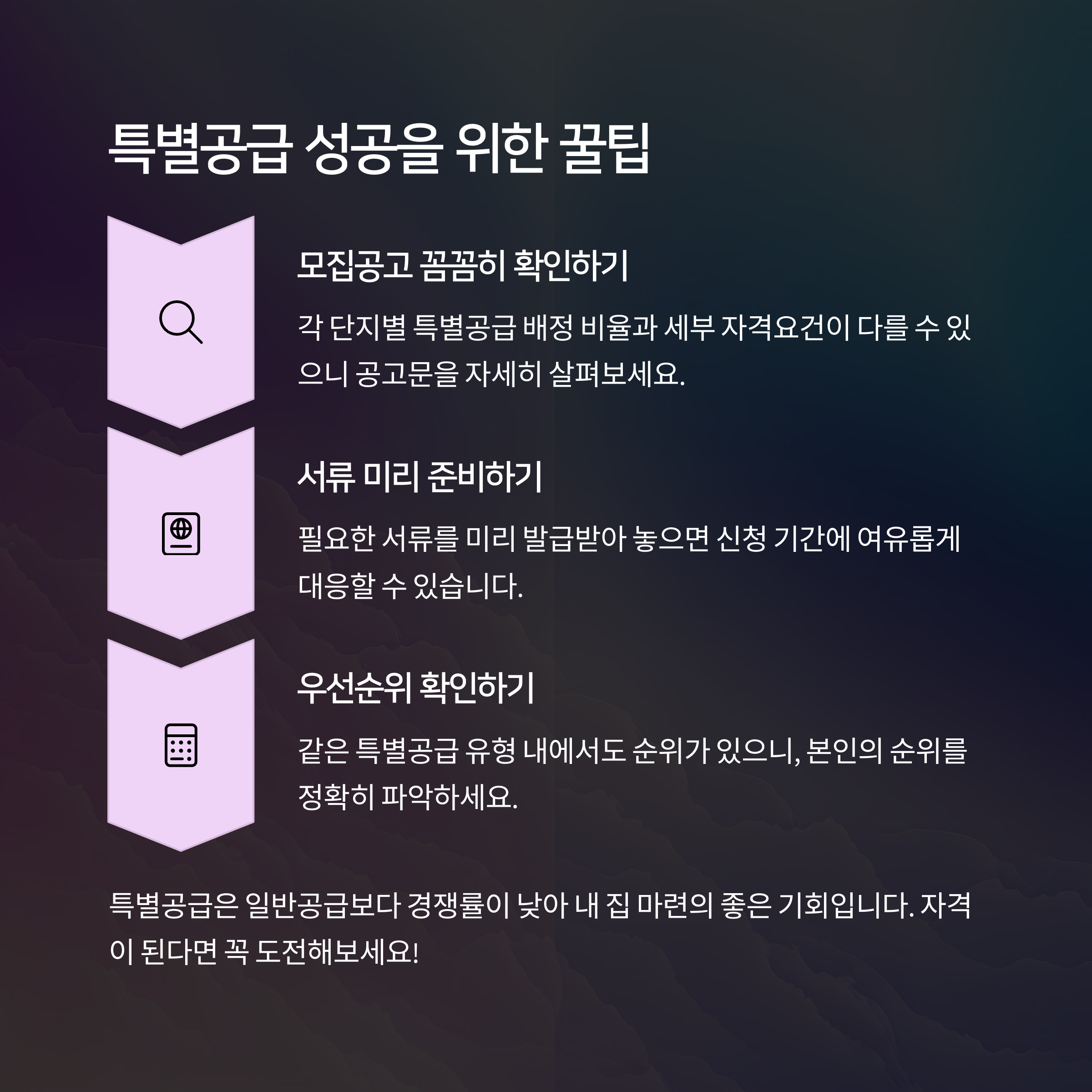 가점 낮다고 청약 포기할 필요 없어! 특별공급 자격만 충족되면 경쟁률이 확 내려가니까, 기회는 오히려 이쪽에 있어요.