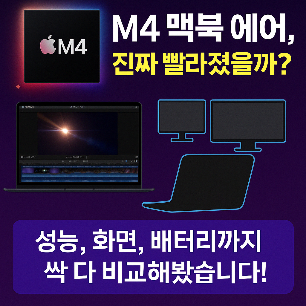 신형 맥북 에어 M4는 현재 맥북 구매를 고려 중이라면, 강력히 추천할 만한 모델입니다. 특히 영상 편집, 디자인 작업, 멀티 모니터 환경이 필요한 분이라면 더욱 만족스러울 선택이 될 것입니다.