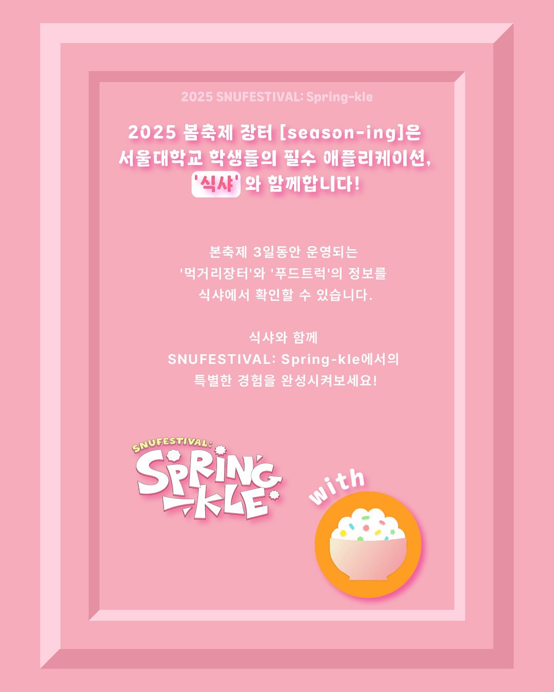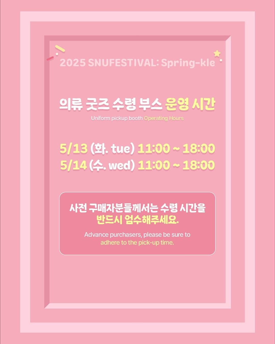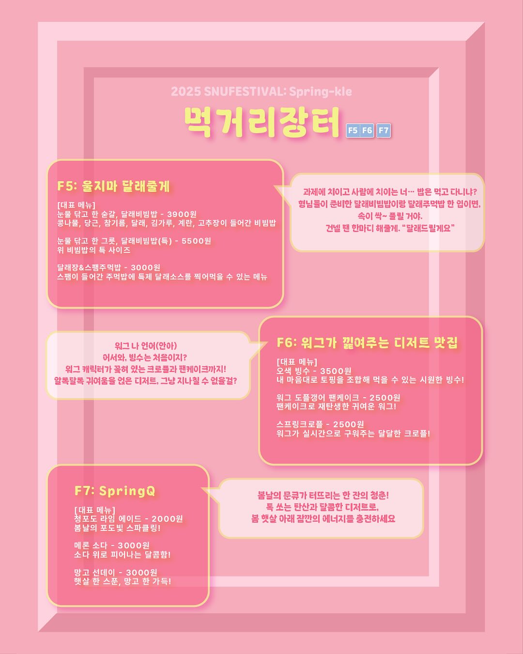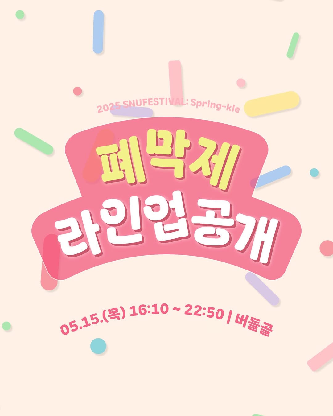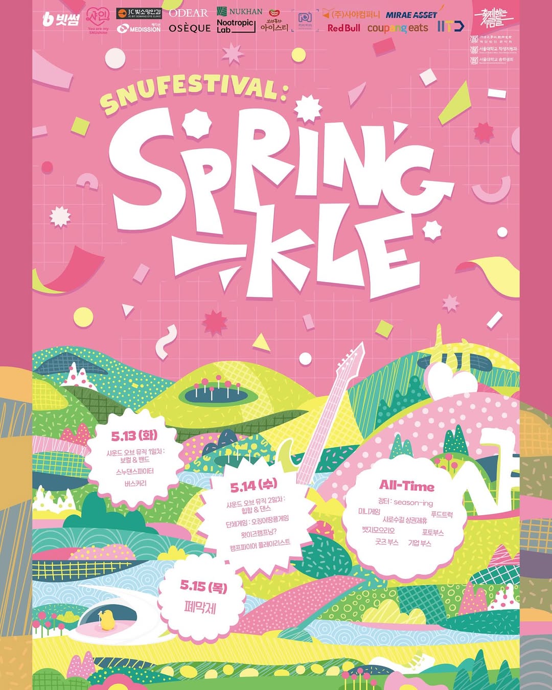 서울대 학생뿐 아니라 외부 방문객도 즐길 수 있는 대표 봄 축제, 관악제가 돌아왔습니다! 2025년 5월 13일(화)부터 15일(목)까지 열리는 이번 관악제는 "SNUFESTIVAL: Spring-kle"라는 테마 아래 다채로운 무대와 즐길 거리가 준비되어 있어요.