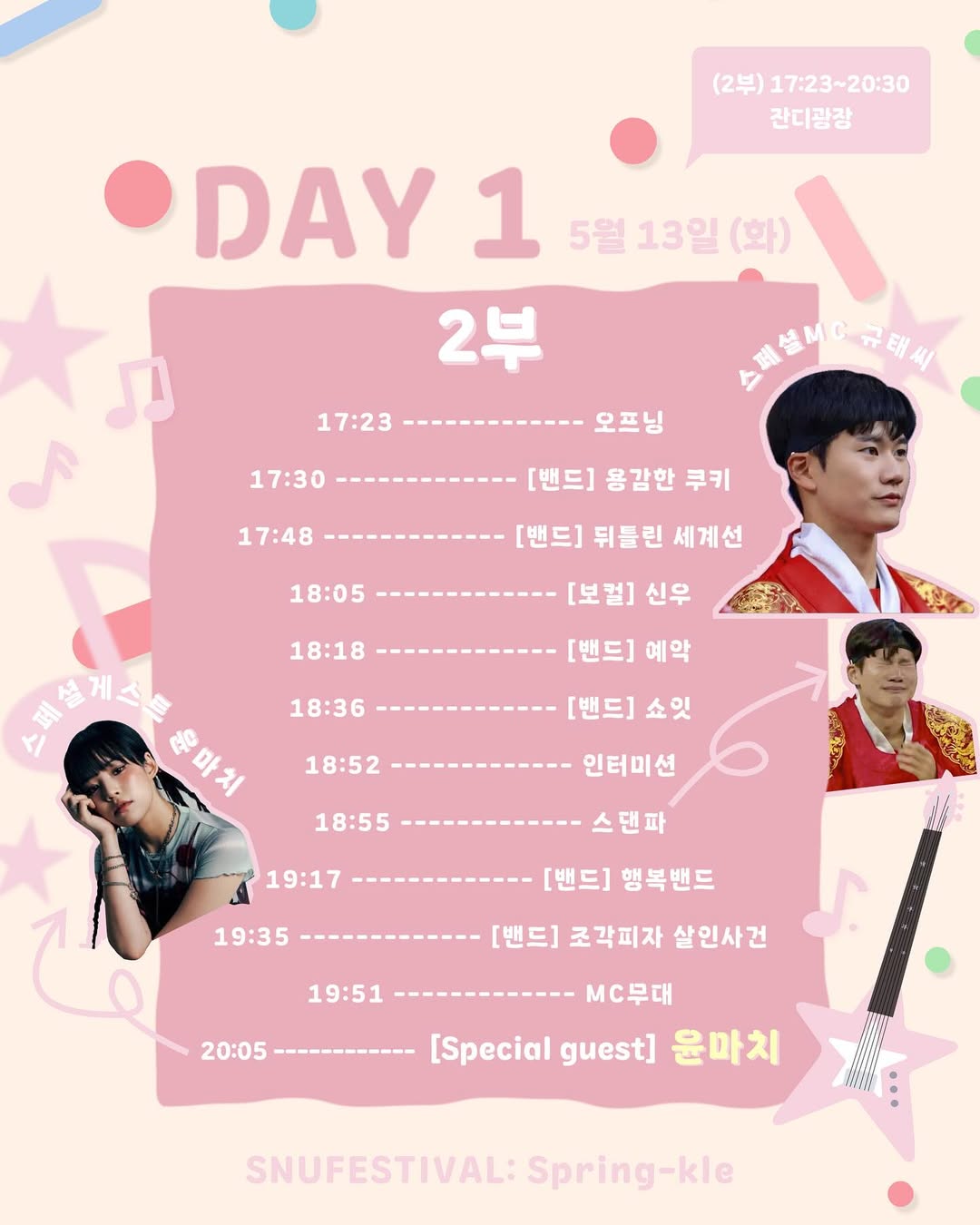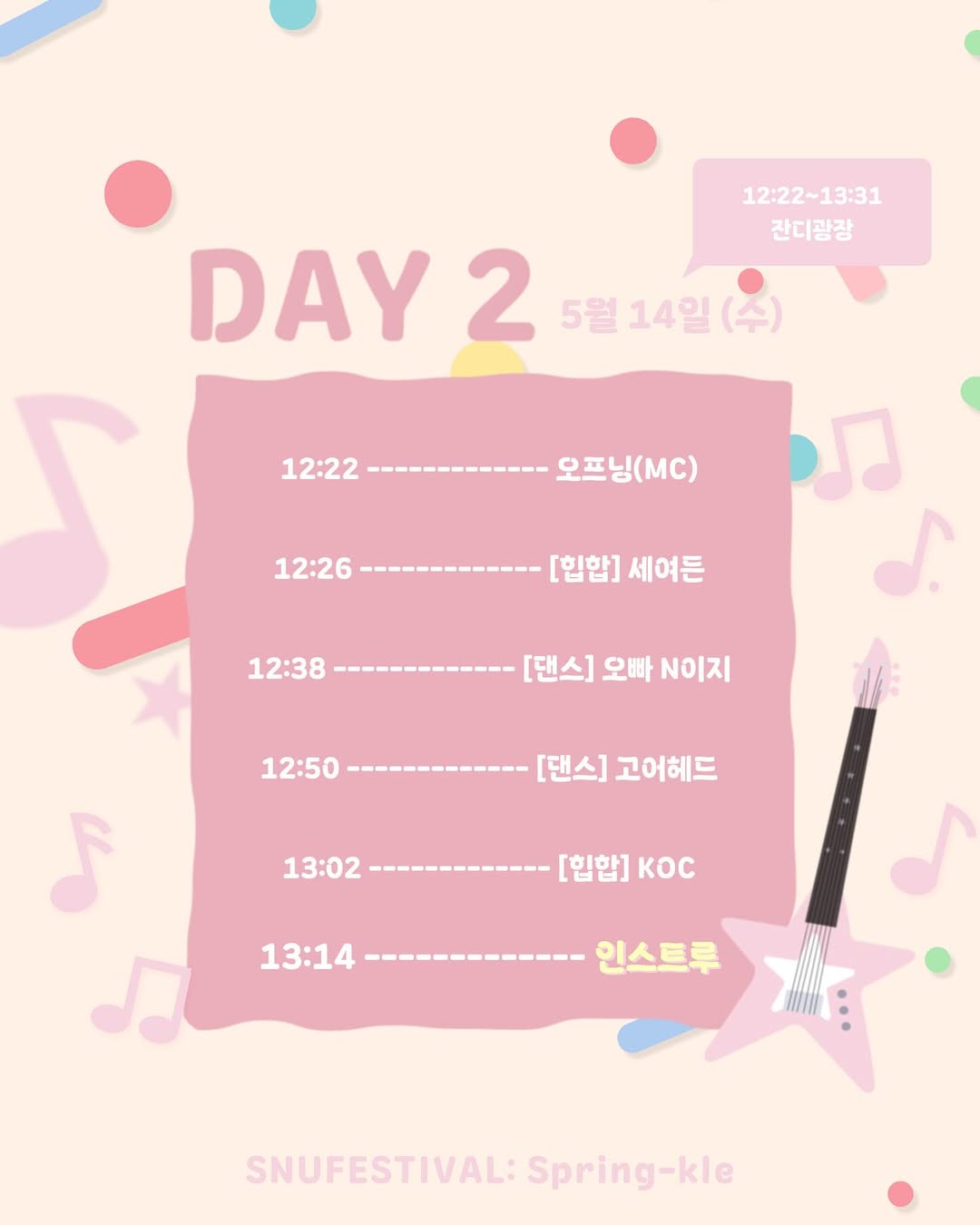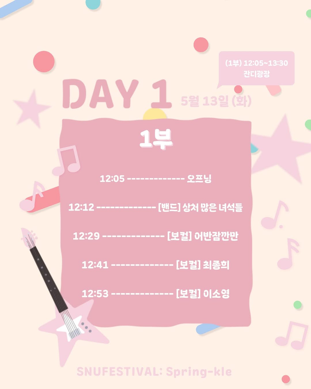 ✅ 5월 13일(화): 개막식, 사운드오브뮤직, 동아리 공연, 버스킹 무대