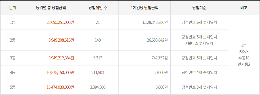 - 1등 당첨자 수: 21명