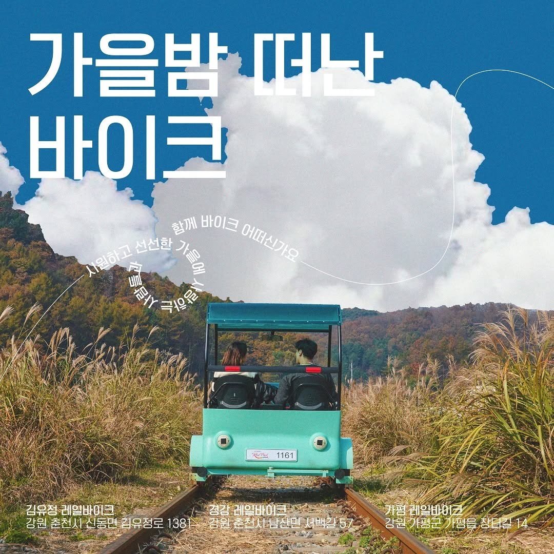 - 강촌레일파크: 시원한 바람 맞으며 레일바이크 체험