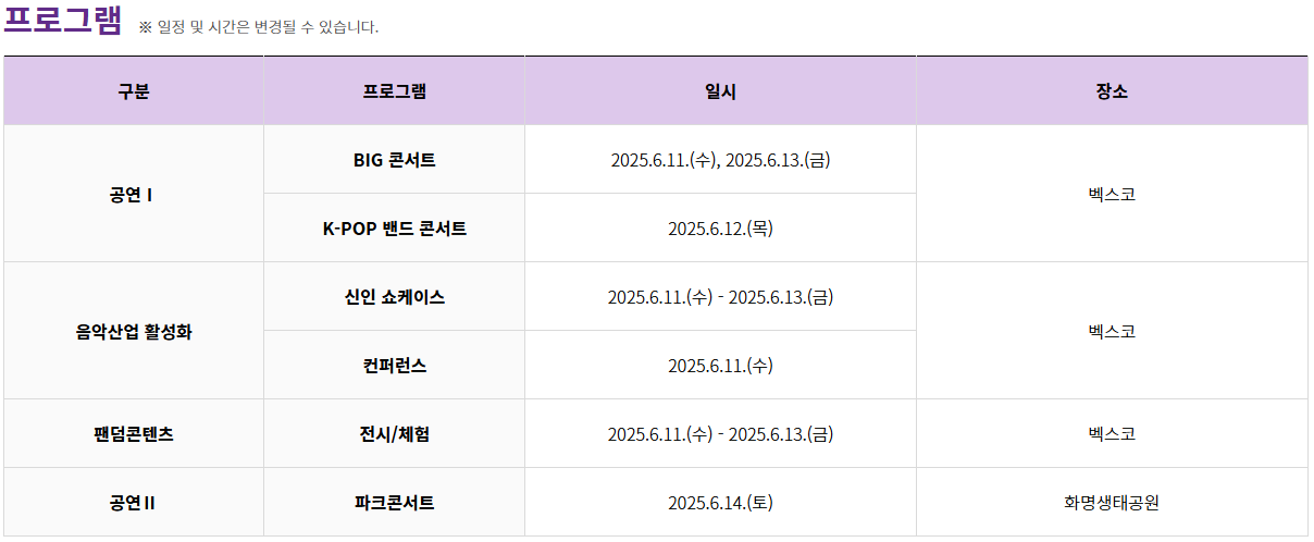 ⭐ 공연 일정 및 라인업