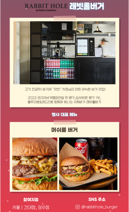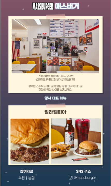 - 전체 리스트 및 상세 주소는 아메리칸 버거 위크 공식 인스타그램 @usmef_korea에서 확인 가능