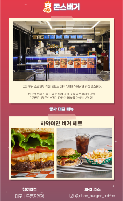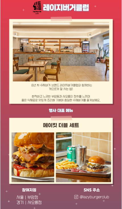 - 매장 방문 시 수제버거 메뉴 최대 20% 할인