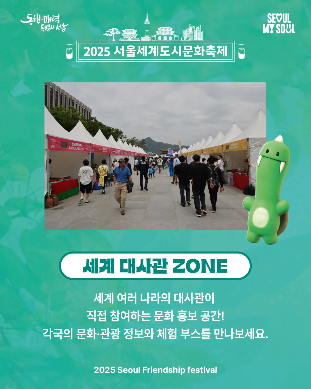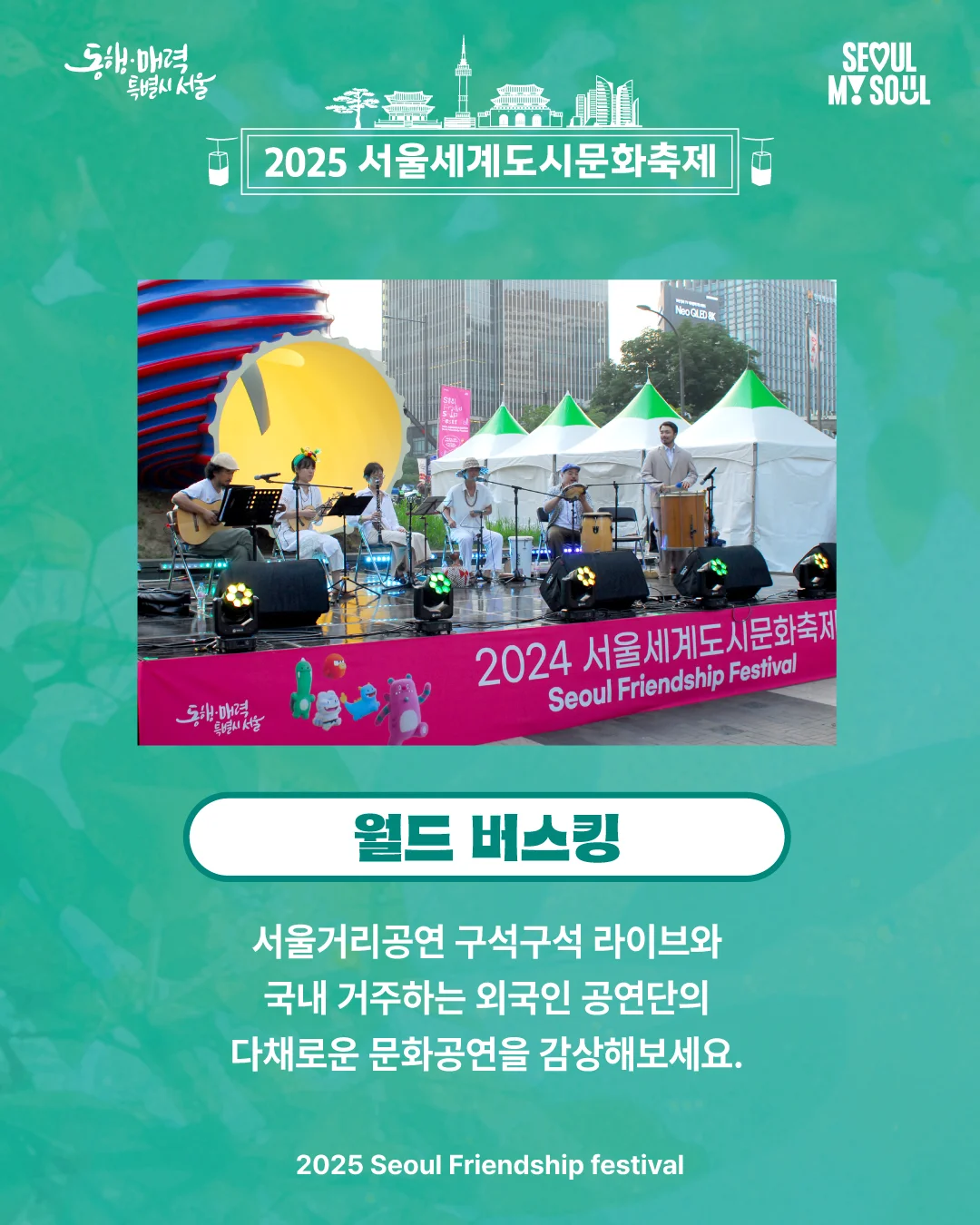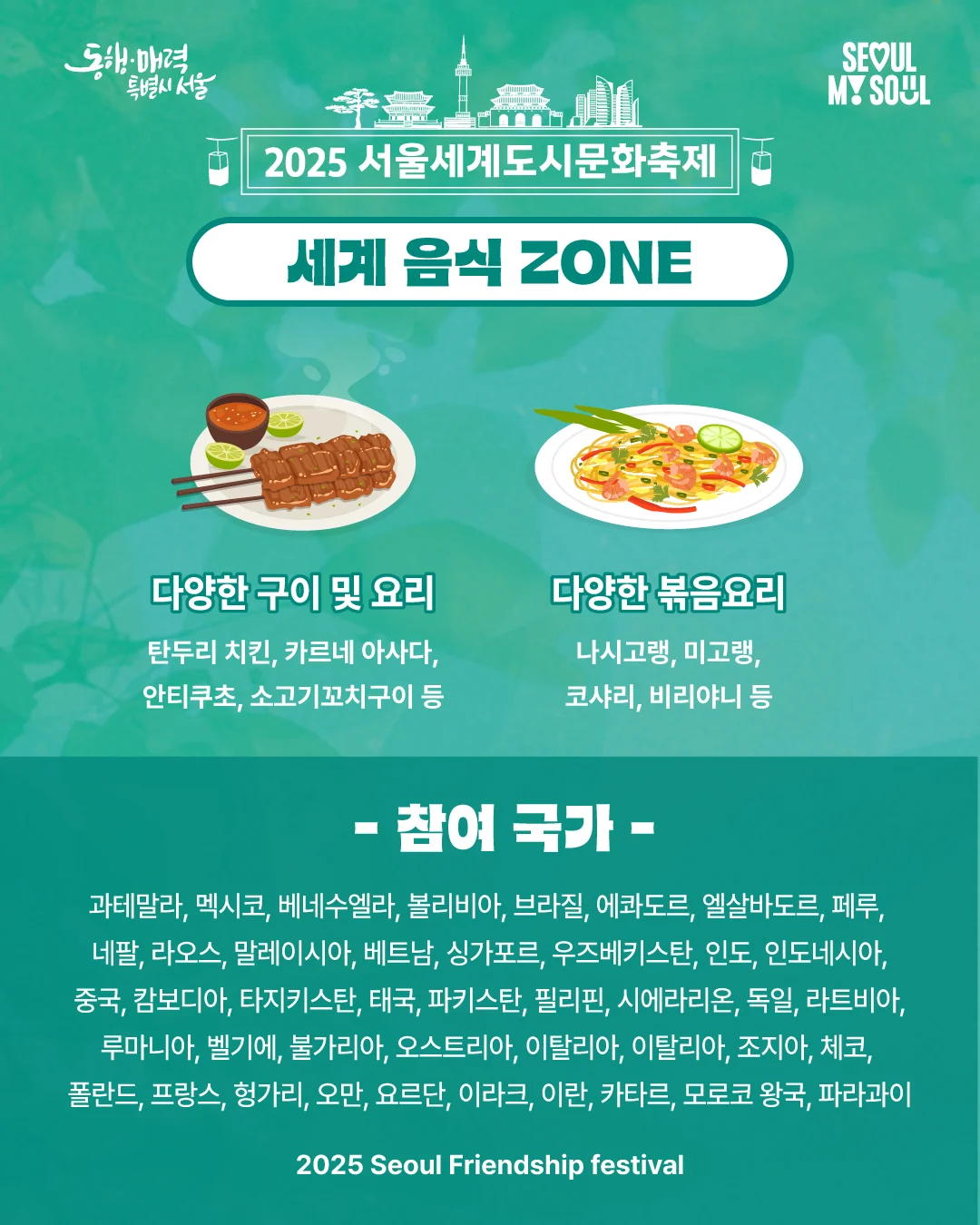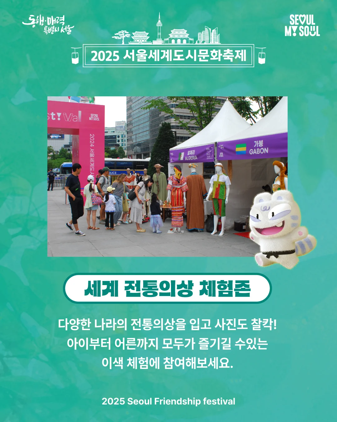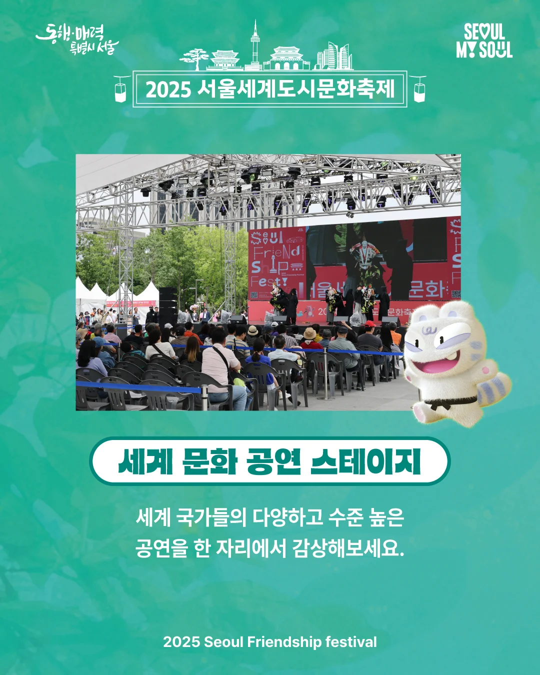 - 축제 개요: 서울시와 자매결연 도시들의 문화를 한자리에서 만날 수 있는 글로벌 축제입니다.