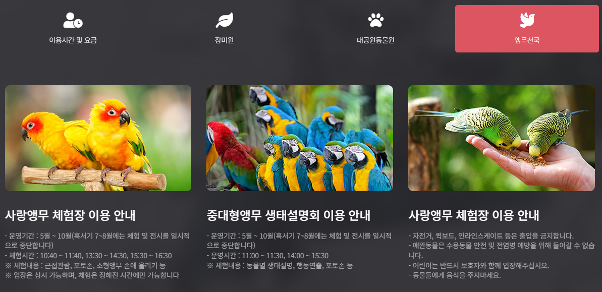 - 동문 주차장: 동물원, 나비원과 가깝고, 남문보다는 여유로울 수 있습니다.